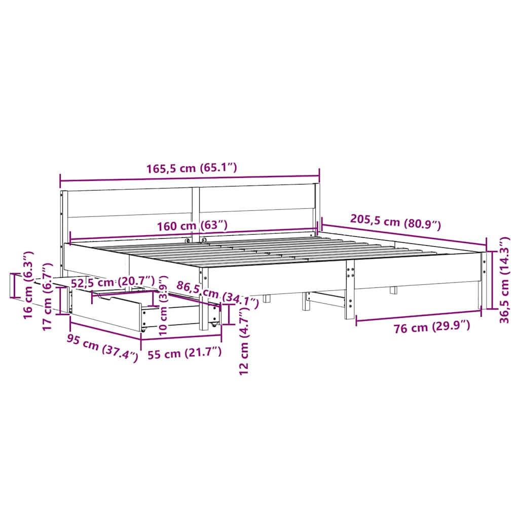 Mit diesem Bett wirst du einen besseren, erholsameren Schlaf genießen! Er ist eine einladende Ergänzung für jedes Schlafzimmer. Stabiles und langlebiges Gestell: Massives Kiefernholz ist für seine Stärke und Haltbarkeit bekannt. Seine gerade Maserung und die charakteristischen Aststellen tragen zu seinem rustikalen Charme bei.Lattenrost für optimale Unterstützung: Der Bettrahmen ist mit einem Lattenrost ausgestattet, der deine Matratze stützt und atmungsaktiv hält.Vielseitiges Kopfteil: Dieses Bettgestell ist mit einem Kopfteil versehen, das als komfortable Rückenstütze beim Lesen oder Fernsehen und gleichzeitig als dekoratives Element dient.Optimale Ausnutzung des Raumes: Dieser Bettrahmen verfügt über zwei Schubladen, in denen du Sachen wie zusätzliches Bettzeug, saisonale Kleidung und Spielzeug aufbewahren kannst.Leichtgängig: Dank der vier Rollen lässt sich die Unterbettschublade mühelos hineinschieben und herausziehen. Gut zu wissen:Bei diesem Bett ist keine Matratze im Lieferumfang enthalten. Wir bieten jedoch eine große Auswahl an Matratzen an. Du kannst in unserem Shop nach einer passenden Matratze suchen.