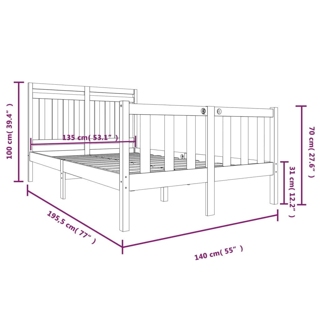- Gesamtabmessungen des Bettrahmens: 195,5 x 140 x 100 cm (L x B x H)