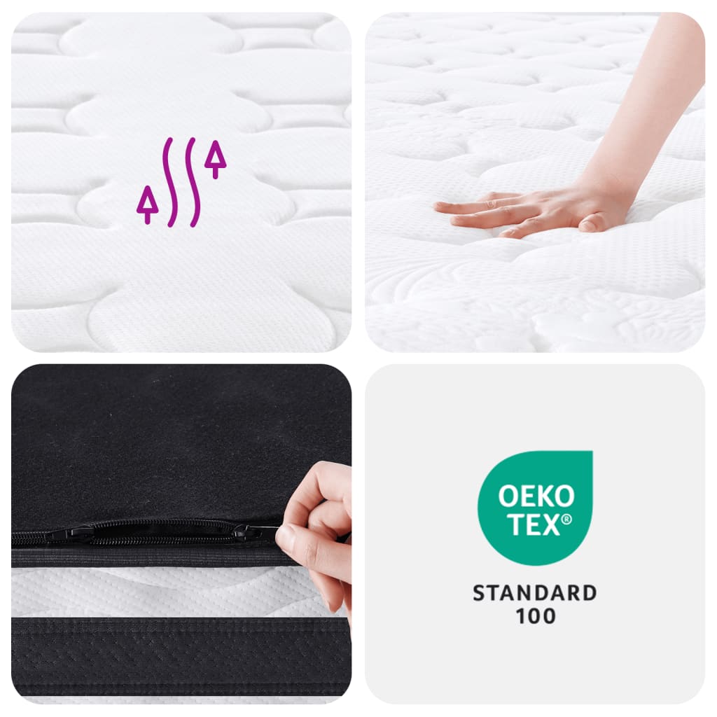 Diese Bonnell-Federkern-Matratze bietet dir ein angenehmes Gefühl und ein komfortables Schlaferlebnis. Haltbarkeit und Langlebigkeit: Der Stoff zeichnet sich durch einen schlichten und sauberen Look aus und ist gleichzeitig atmungsaktiv, hautfreundlich und langlebig. Ausgezeichnete Unterstützung: Das Bonnell-Federsystem besteht aus miteinander verbundenen Stahlspiralen in Sanduhr-Form, die fest und stabil sind, um besten Halt und Langlebigkeit zu bieten. Erhöhter Komfort: Die Federkernmatratze besteht aus mehreren Schichten, darunter eine Schaumstoffschicht, eine Isolierschicht und eine Federschicht. Diese Kombination bietet ein weiches bis mittleres Liegegefühl und einen hohen Liegekomfort in allen Schlafpositionen. Darüber hinaus absorbiert die Matratze effektiv Geräusche und Vibrationen, die durch das Hin- und Herdrehen verursacht werden, und sorgt so für einen ruhigen und ungestörten Schlaf. Einfache Pflege: Die Federkernmatratze ist mit einem langen Reißverschluss ausgestattet, so dass sich der Bezug zum Reinigen leicht abnehmen lässt. Gut zu wissen:Der Bezug der Matratze ist bei bis zu 40 °C waschbar. Es ist zu beachten, dass er nicht häufig gewaschen werden sollte. Die Matratze ist komprimiert und aufgerollt in einem Karton verpackt, so dass du sie leicht bewegen und in deinem Zimmer aufstellen kannst.