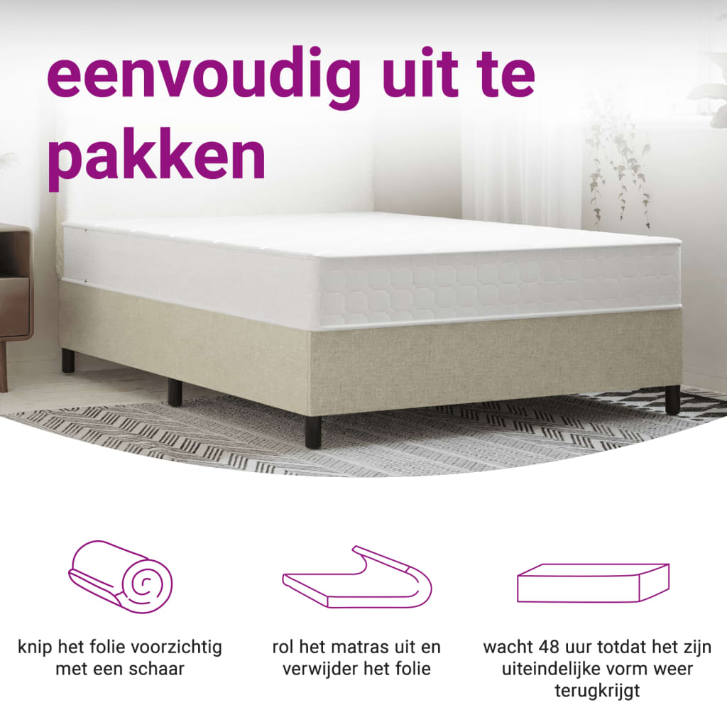 Diese Taschenfederkernmatratze wurde entwickelt, um ein angenehmes Gefühl und ein komfortables Schlaferlebnis zu gewährleisten. Haltbarkeit und Langlebigkeit: Der Stoff zeichnet sich durch einen schlichten und sauberen Look aus und ist gleichzeitig atmungsaktiv, hautfreundlich und langlebig. Individuelle Unterstützung: Jede gewebeummantelte Spiralfeder reagiert auf die Druckpunkte: sie stützt gezielt und verteilt den Druck auf die Wirbelsäule gleichmäßig. Druckentlastung: Die Taschenfederkernmatratze verfügt über 7 Liegezonen, die effektiv Druck entlasten und alle Körperbereiche wie Füße, Knie, Hüfte, Taille, Rücken, Schultern und Kopf optimal unterstützen. Erhöhter Komfort: Die Federkernmatratze besteht aus mehreren Schichten, darunter eine Schaumstoffschicht, eine Isolierschicht und eine Federschicht. Diese Kombination bietet ein weiches bis mittleres Liegegefühl und einen hohen Liegekomfort in allen Schlafpositionen. Darüber hinaus absorbiert die Matratze effektiv Geräusche und Vibrationen, die durch das Hin- und Herdrehen verursacht werden, und sorgt so für einen ruhigen und ungestörten Schlaf. Einfach zu benutzen: Die Matratzen-Handzieher bietet eine sichere und einfache Möglichkeit, eine schwere und sperrige Matratze anzuheben und zu bewegen. Außerdem verfügt die Federkernmatratze über einen langen Reißverschluss, mit dem sich der Bezug zur Reinigung leicht abnehmen lässt. Gut zu wissen:Der Bezug der Matratze ist bei bis zu 40 °C waschbar. Es ist zu beachten, dass er nicht häufig gewaschen werden sollte. Die Matratze ist komprimiert und aufgerollt in einem Karton verpackt, so dass du sie leicht bewegen und in deinem Zimmer aufstellen kannst.