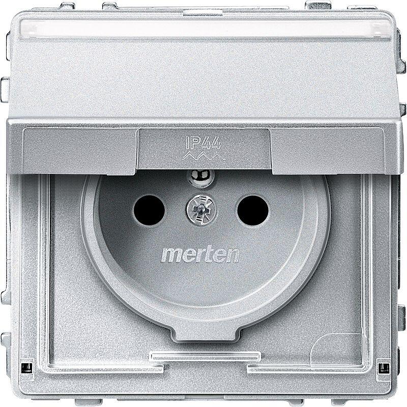 Merten MEG2612-7260 Steckdose, Aquadesign, Schutzkontaktstift, Klappdeckel, Schriftfeld, Berührungsschutz, Schraub-Liftklemmen, aluminium