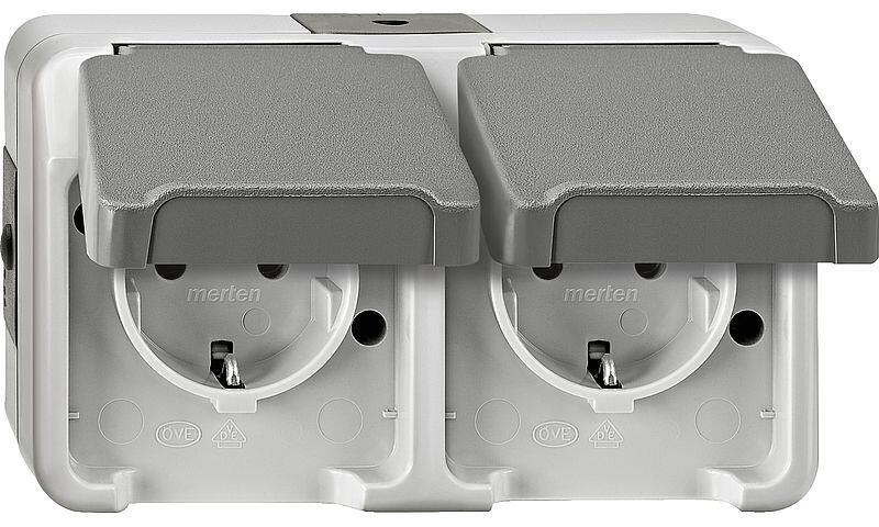 Merten SCHUKO-Doppel-Steckdose, Aquastar, 16 A, AC 250 V, waagerecht angeordnet, Berührungsschutz, lichtgrau, (MEG2320-80299