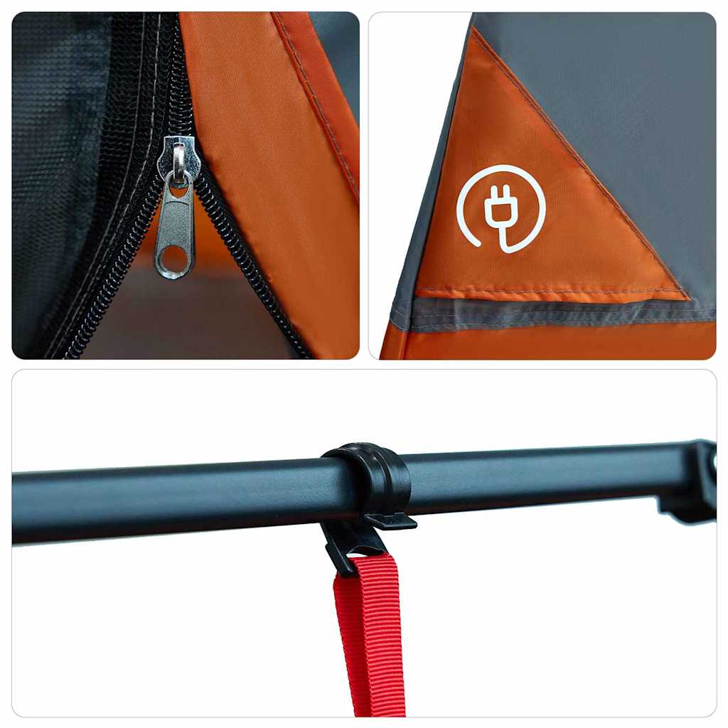 Lerne das coole Outdoor-Zelt kennen, das perfekt für deine Sommer-Camping-Action ist! Es hat einen modernen Touch und praktische Features, die jeder Outdoor-Fan liebt. Das Zelt sieht nicht nur gut aus, sondern passt auch super zu trendigen Designs ? ideal für all deine Camping-Trips. Genieße die Natur in vollen Zügen, ohne auf Komfort verzichten zu müssen, dank des großzügigen Aufbaus und dem atmungsaktiven Design. Wasserdichtes Material: Hergestellt aus 185T-Polyester mit PU-Beschichtung, hält dich das Zelt trocken bei Regen und Feuchtigkeit ? bereit für alle Überraschungen, die dein Campingtrip so mit sich bringt. Der robuste Stoff schützt dich, während du die frische Luft genießt. Inklusive Komponenten: Das Zelt kommt mit einem stabilen Reißverschluss für einfachen Zugang und einer angenehmen Handhabung. Das nahtlose Design sorgt dafür, dass du schnell rein und raus kommst, ohne großen Aufwand. Eine Tragetasche ist auch dabei, was das Packen und Abhauen kinderleicht macht. Atmungsaktives Design: Mit Netz-Elementen sorgt es für frischen Luftstrom, damit es auch bei Sonnenschein kühl bleibt. So verbessert sich nicht nur dein Komfort, sondern es hilft auch, Feuchtigkeit und Kondensation zu vermeiden, damit es drinnen angenehm bleibt. Vielseitige Nutzung: Perfekt für Sommer-Camping und alle möglichen Outdoor-Abenteuer, passt dieses Zelt zu allem, von Wochenendtrips bis hin zu längeren Aufenthalten in der Natur. Sein stylisches Design macht an jedem Ort eine gute Figur. Pflege & Wartung: Es sauber zu halten ist kinderleicht ? einfach mit einem feuchten Tuch abwischen, um es frisch zu halten. Diese einfache Pflege sorgt dafür, dass dein Zelt jederzeit bereit für dein nächstes Abenteuer ist.