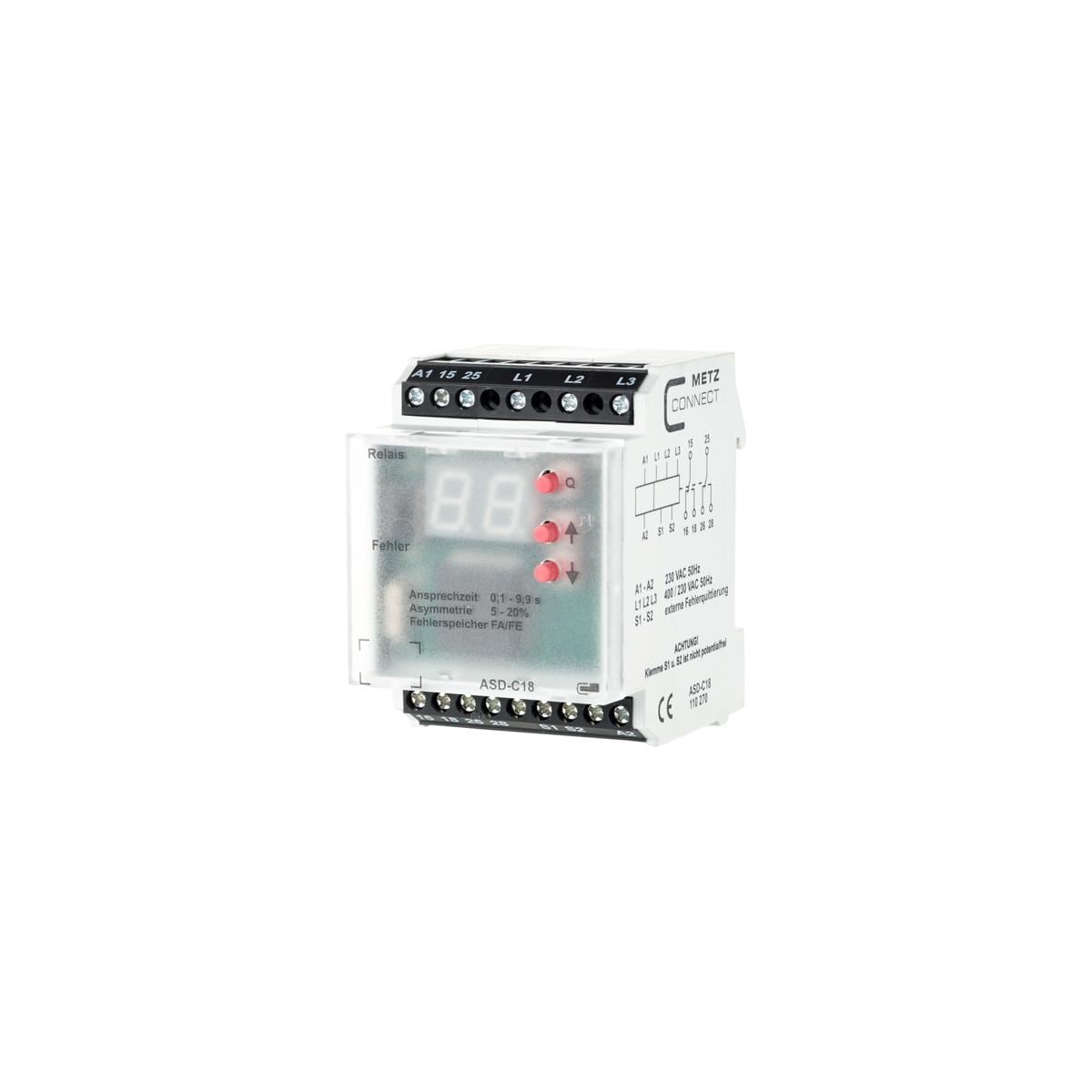 Überwachungsrelais zur Überwachung eines Drehstromanschlusses auf Asymmetrie, Phasenausfall, Phasenfolgefehler sowie Über- und Unterspannung. Mit externer Fehlerquittierung.
