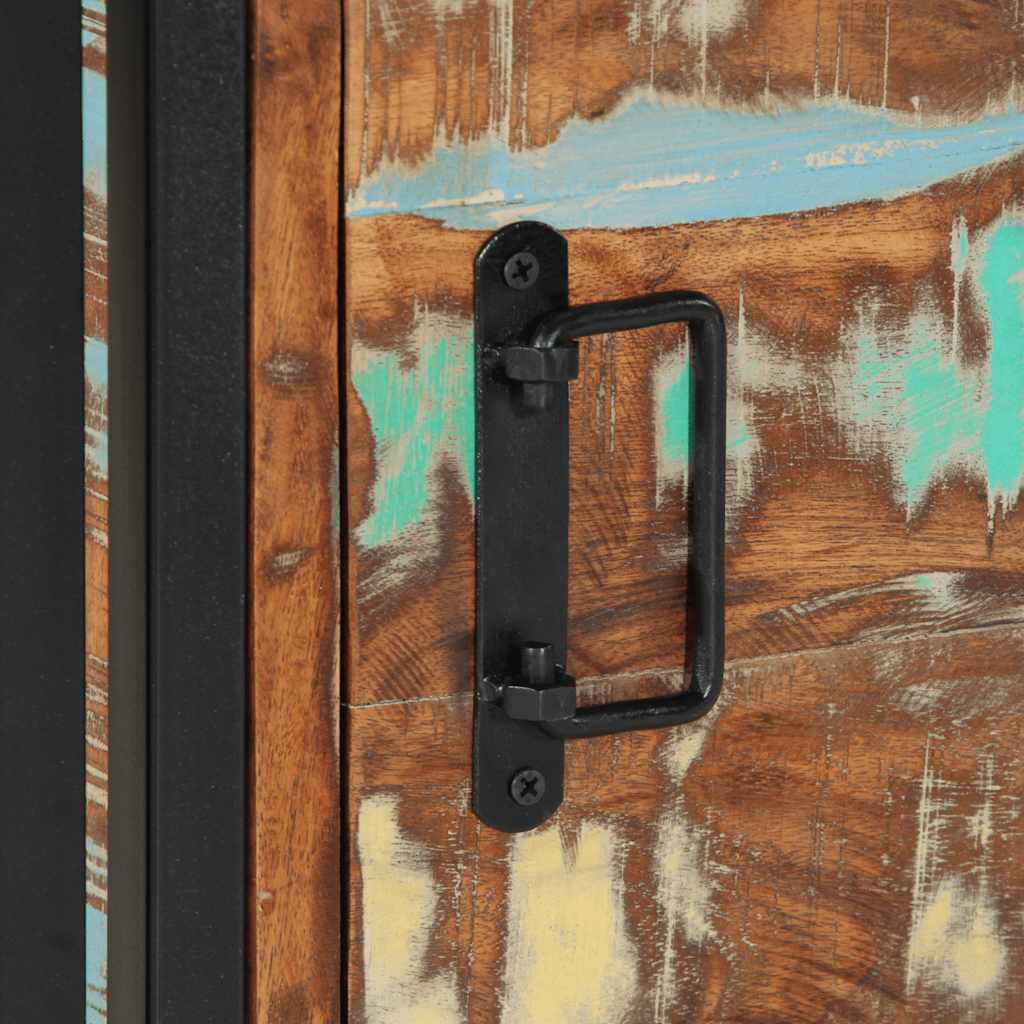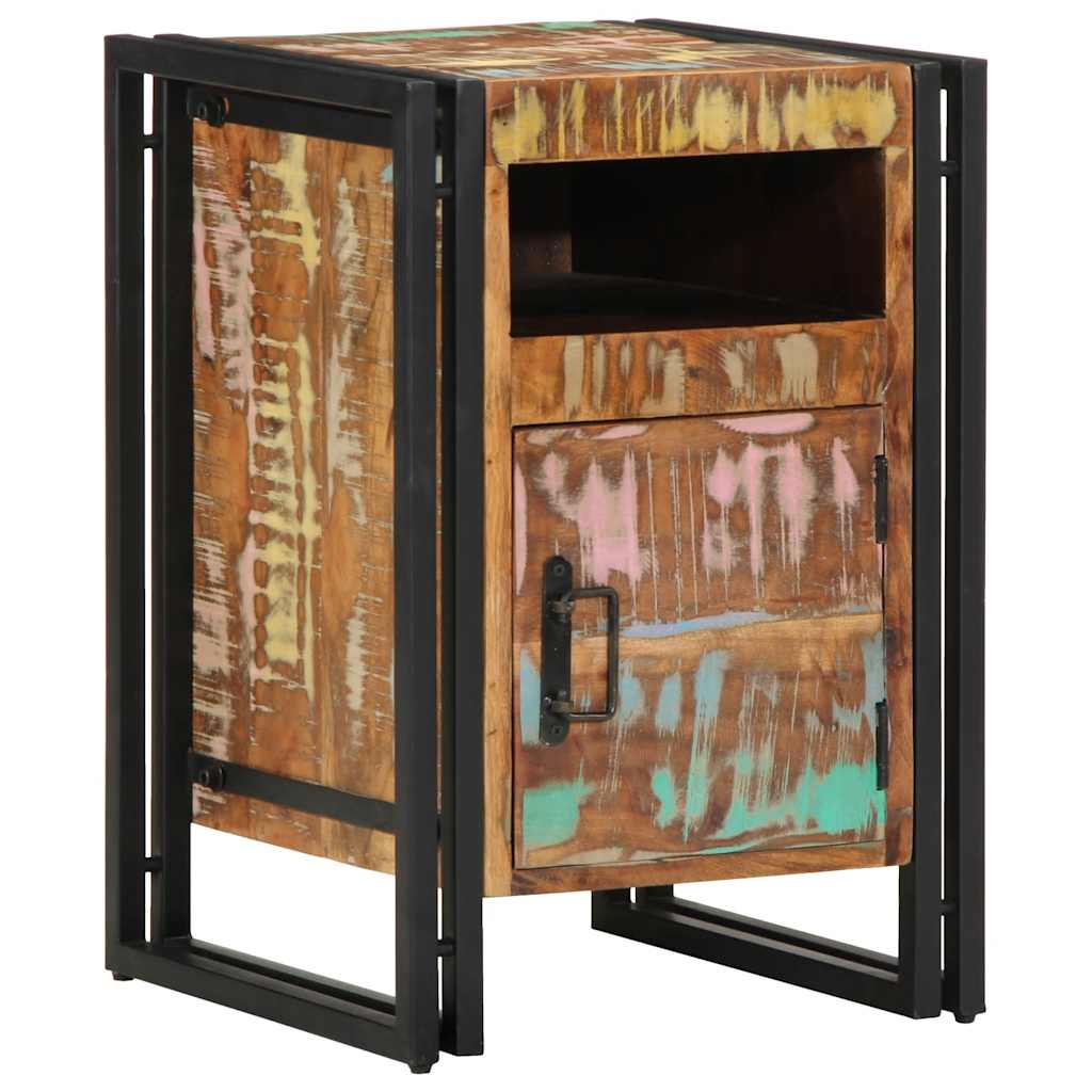 Mit seinem eleganten Design ist dieser Nachttisch aus Holz eine zeitlose Ergänzung zu deiner Inneneinrichtung. Robust und stabil: Massives Altholz besteht aus wiederverwendeten Holzarten wie Teakholz, Mangoholz, Kiefernholz und Buche. Diese Materialien werden aus alten Gebäuden wie Fabriken, Schuppen und Booten recycelt. Gebrauchsspuren und die sichtbare Maserung erzählen die Geschichte jedes einzelnen Stücks und verleihen jedem Möbelstück einen einzigartigen Look. Reichlich Stauraum: Der Nachttisch bietet reichlich Stauraum für Zeitschriften, Bücher, Gläser und andere Dinge, die in der Nähe des Bettes benötigt werden.Stabiles und langlebiges Gestell: Eisen ist stark, stabil und langlebig, was ihn zur idealen Wahl für eine Vielzahl von Anwendungen macht, von der Möbelherstellung bis hin zum Bauwesen. Robuste Platte: Die stabile Oberplatte des Nachtschranks eignet sich perfekt für Tischlampen, Wecker, Bücher, Bilderrahmen, kleine Topfpflanzen, Dekoartikel oder andere wichtige Dinge. Praktischer Griff: Der Griff des Nachtschranks liegt gut in der Hand und erleichtert das Öffnen und Schließen des Schranks, während er gleichzeitig für zusätzliche Schönheit sorgt. Achtung:Um ein Umkippen zu vermeiden, sollte dieses Produkt mit der mitgelieferten Wandhalterung gesichert werden.