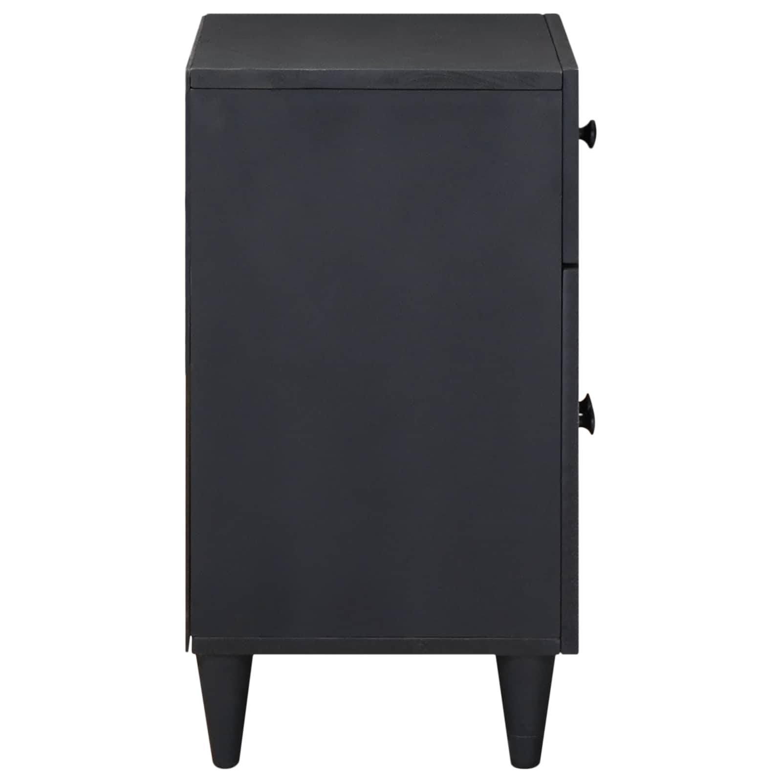 Dieser moderne Nachttisch bringt frischen Wind in dein Schlafzimmer mit seinem schlanken Design und praktischen Nutzen. Er kombiniert klare Linien und Eleganz durch die rechteckige Form aus massivem Mangoholz und Ergänzungen aus Holzwerkstoff. Perfekt für eine Leselampe, einen Wecker oder kleine persönliche Sachen ? er integriert sich nahtlos in moderne Innenräume. Massivholz Mango: Hauptstruktur aus massivem Mangoholz sorgt für Stabilität und Langlebigkeit. Die natürlichen Maserungen bringen einen warmen, organischen Look, der mit den Messingdetails harmoniert und den Nachttisch zum Unikat in deinem Raum macht. Messingknöpfe: Die Messingknöpfe bringen einen feinen Touch und sorgen für mehr Eleganz. Sie fördern den schnellen Zugang zu Stauraum, was die Funktionalität erhöht. Kompaktes Design: Mit seinen Maßen von 50 x 33 x 60 cm passt der Tisch super neben jedes Bett. Kleine Größe, große Vielseitigkeit ? perfekt für kleinere Schlafzimmer oder städtische Wohnräume, wo jeder Zentimeter zählt. Modernes Design: Dieser Tisch steht für modernes Design mit klaren Linien und minimalem Schnickschnack. Seine schlichte Ästhetik lässt ihn problemlos in verschiedene Schlafzimmerstile verschmelzen und betont sowohl moderne als auch klassische Dekore. Einfache Pflege: Um den Tisch sauber zu halten, genügt ein feuchtes Tuch. So bleibt das lebhafte, mehrfarbige Finish über die Jahre wunderschön, und er sieht aus wie neu.