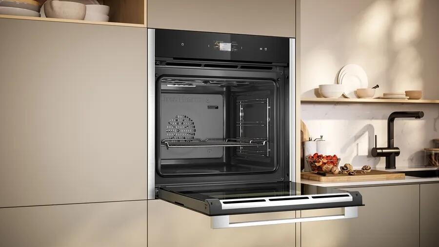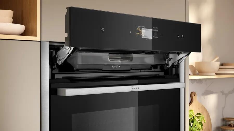 Neff B24FS33N0 N90 A+ Einbaudampfbackofen, 60 cm breit, 71 L, Wassertank, TFT-Display, Grill, CircoTherm, Kindersicherung, schwarz/Edelstahl