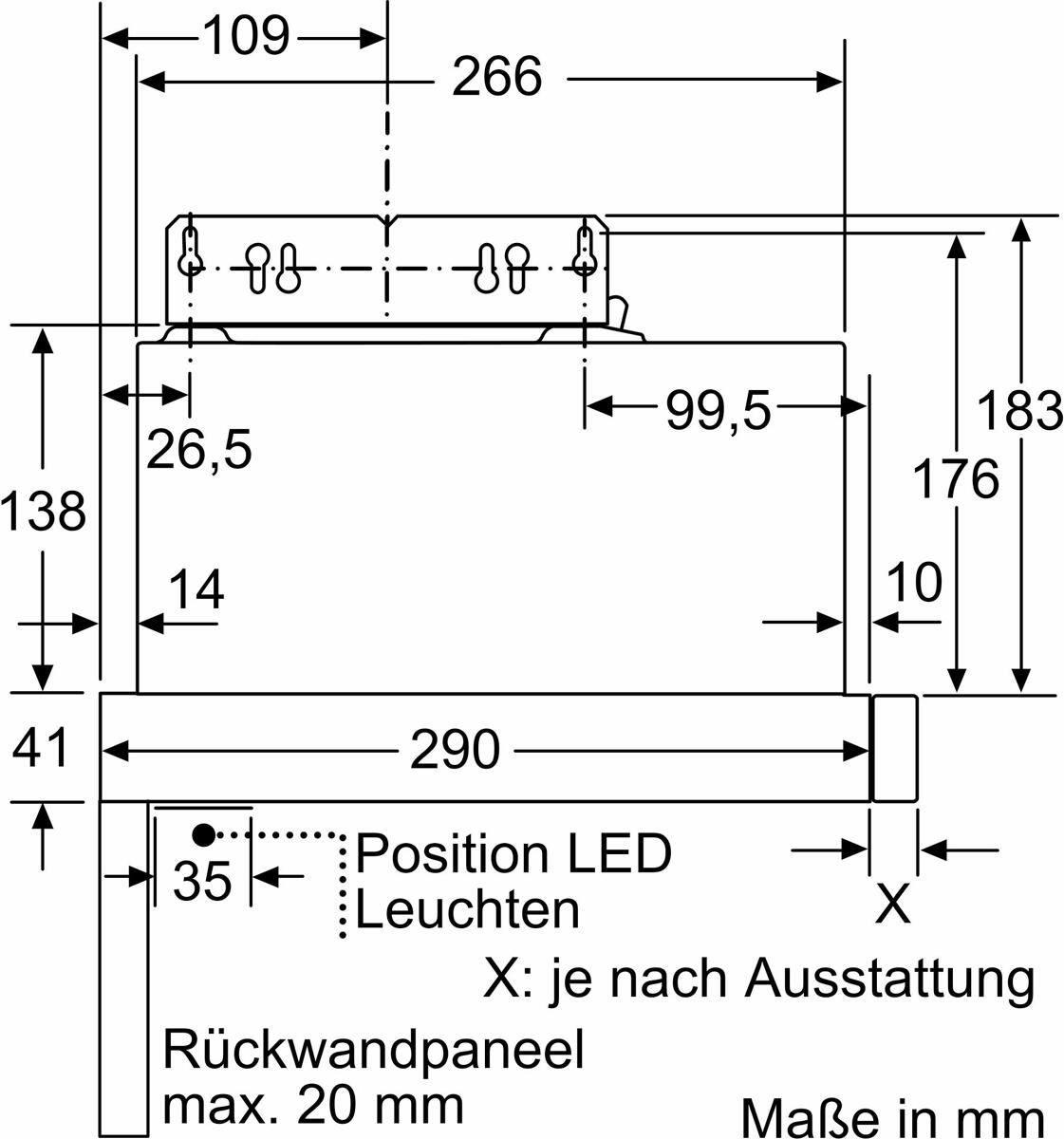- Einbaumaße (HxBxT): 162 x 526 x 290 mm