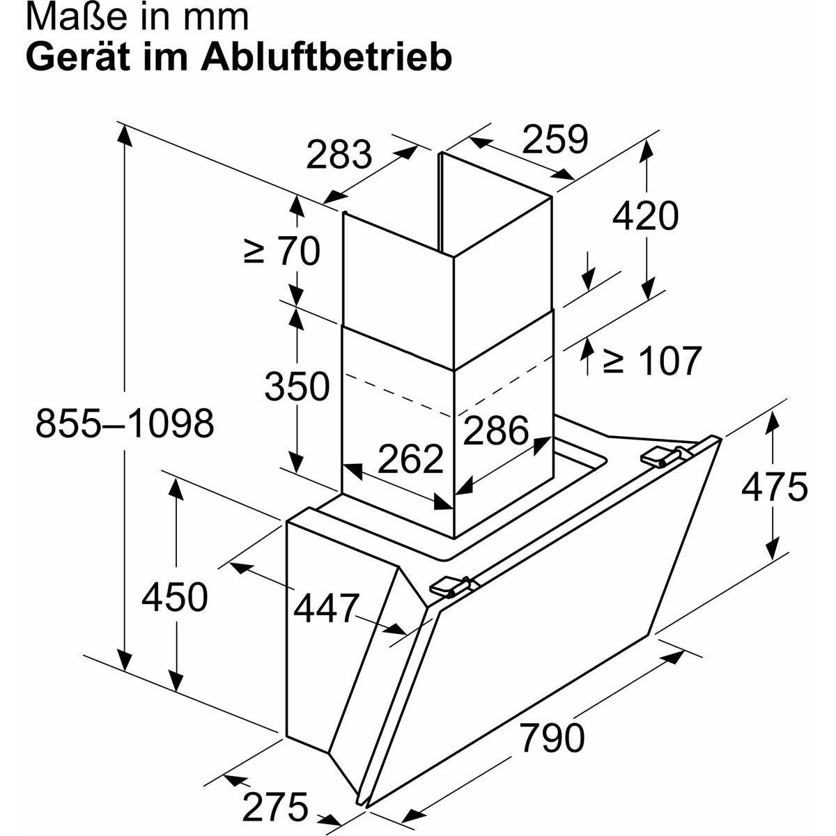 - Nicht zutreffend Geraetehöhe Abluft max 1098 mm