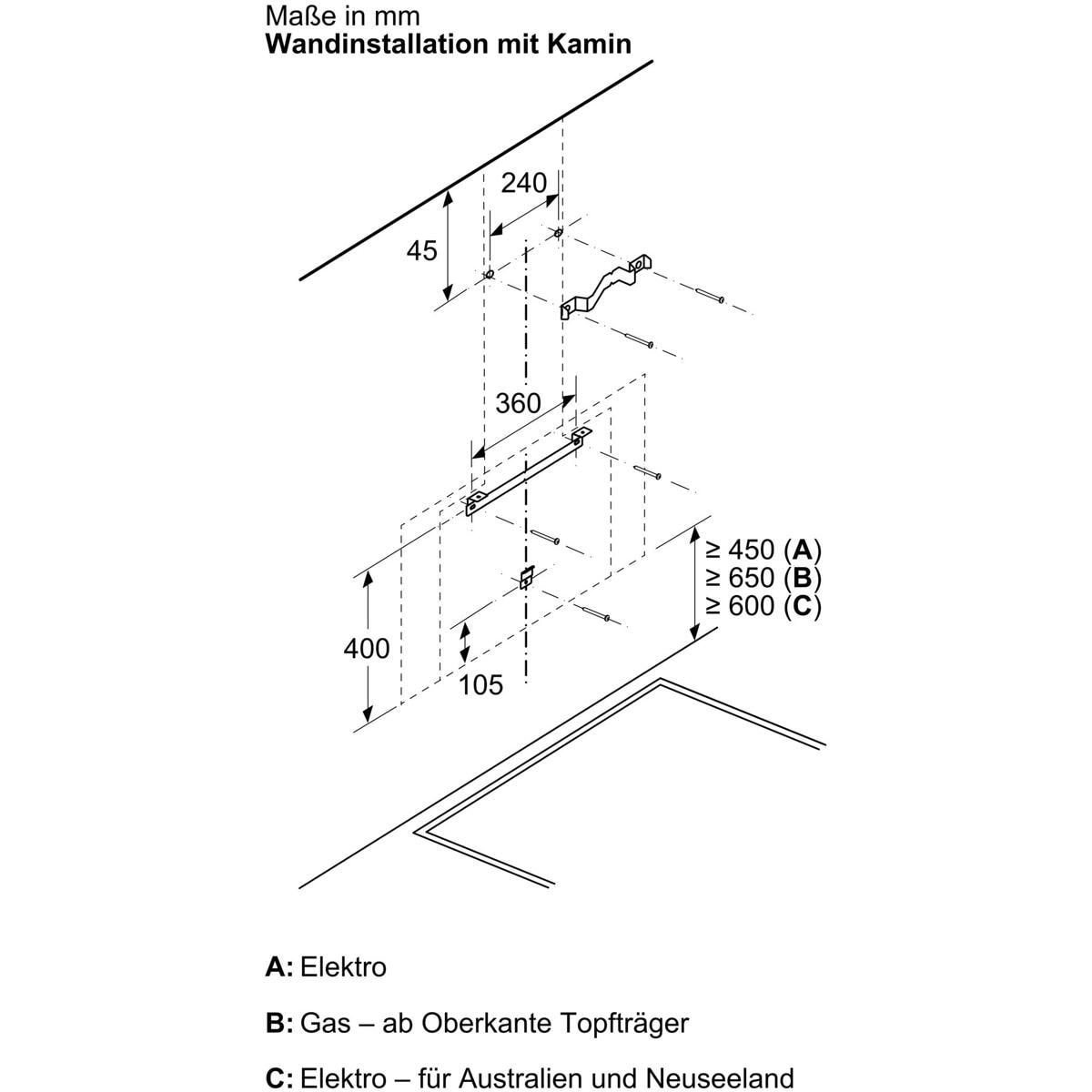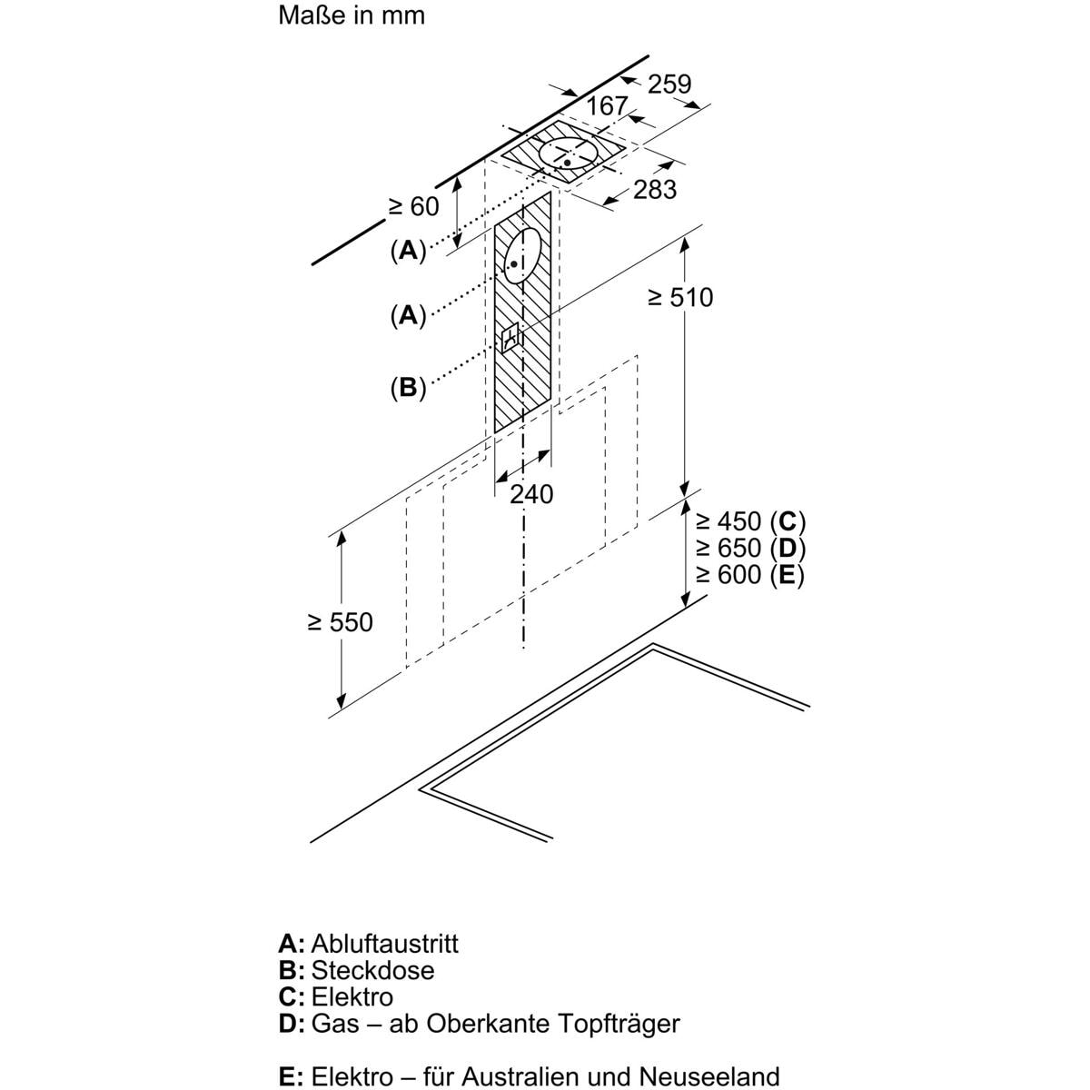 - Mindestabstand zur Kochstelle Elektro 450 mm