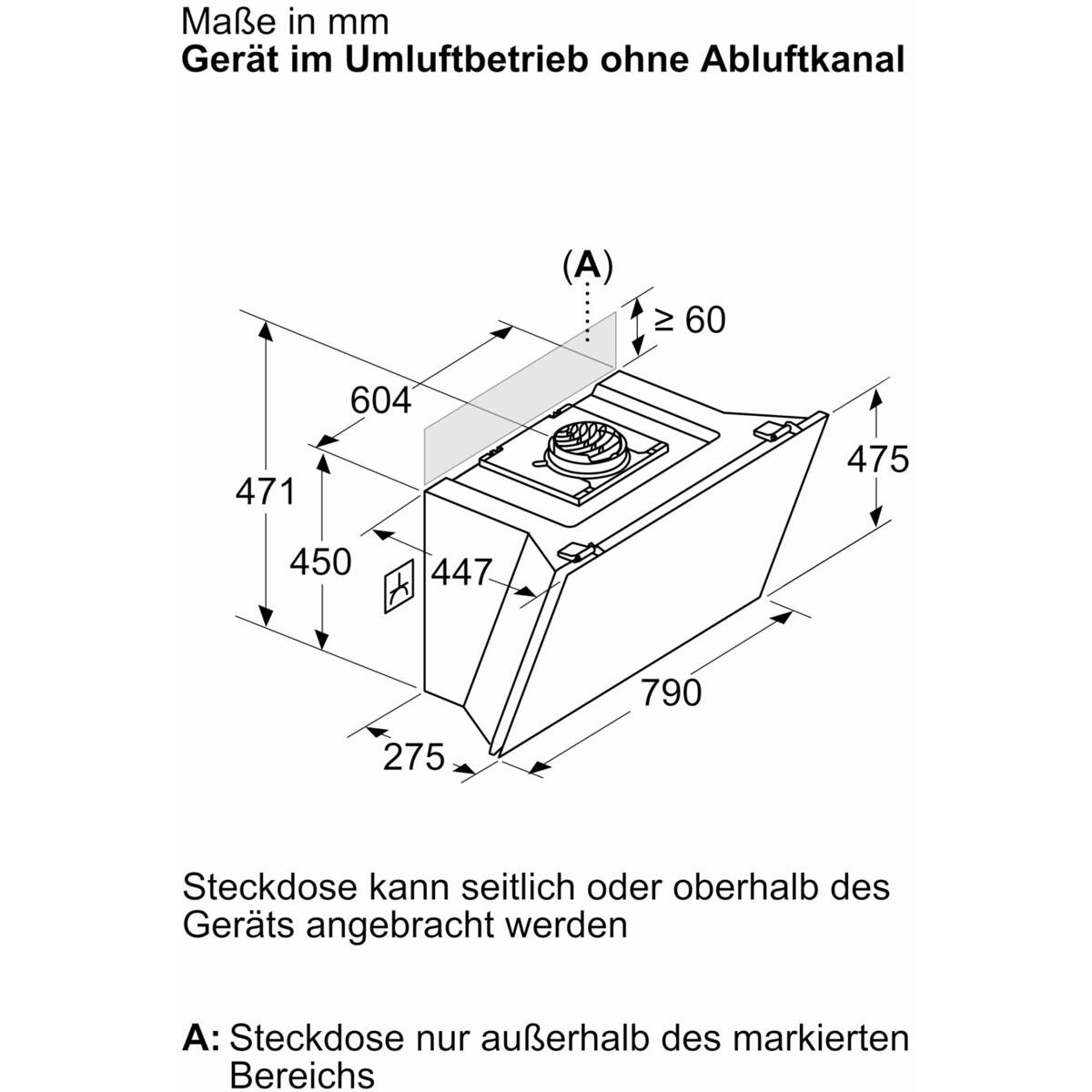 - Gebläseleistung bei Intensivstufe-Umluftbetrieb 886 m³/h 60 dB