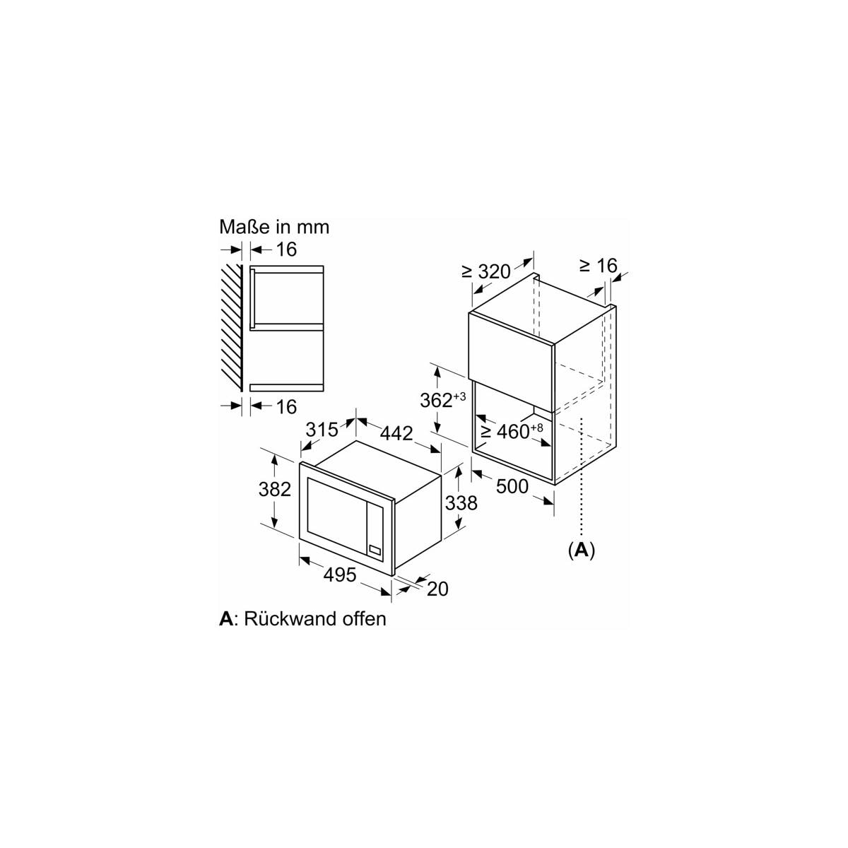 - Nischenmaße (HxBxT): 365 mm x 460 mm x 320 mm
