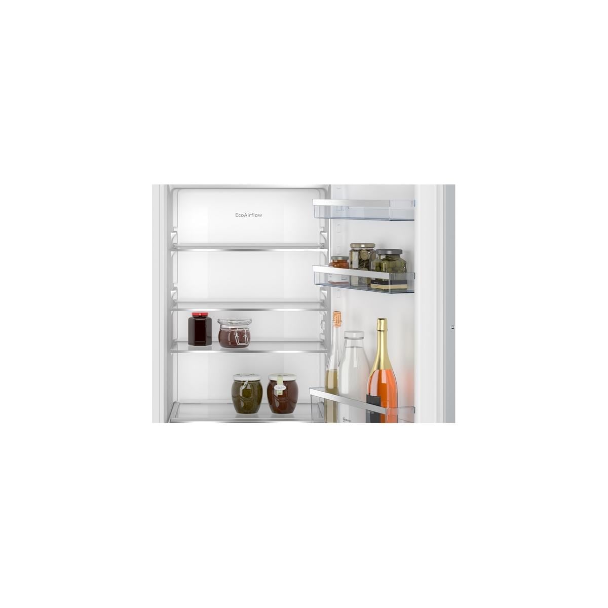Dieser Einbaukühlschrank mit **** Gefrierfach hält die Lebensmittel dank der idealen Luftzirkulation Eco Air Flow und den flexiblen Aufbewahrungsmöglichkeiten bestmöglich frisch.