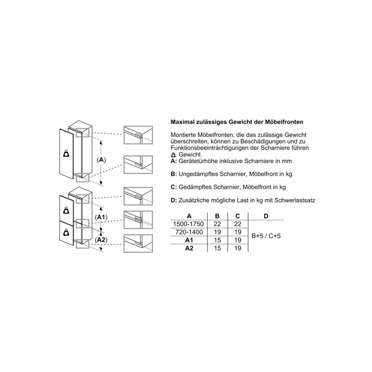 Neff KI7863DD0 N70 Einbau Kühl-Gefrierkombination, Nischenhöhe 177 cm, Breite 56 cm, 260L, Festtürtechnik, NoFrost, LED Beleuchtung, 0 Grad Fach