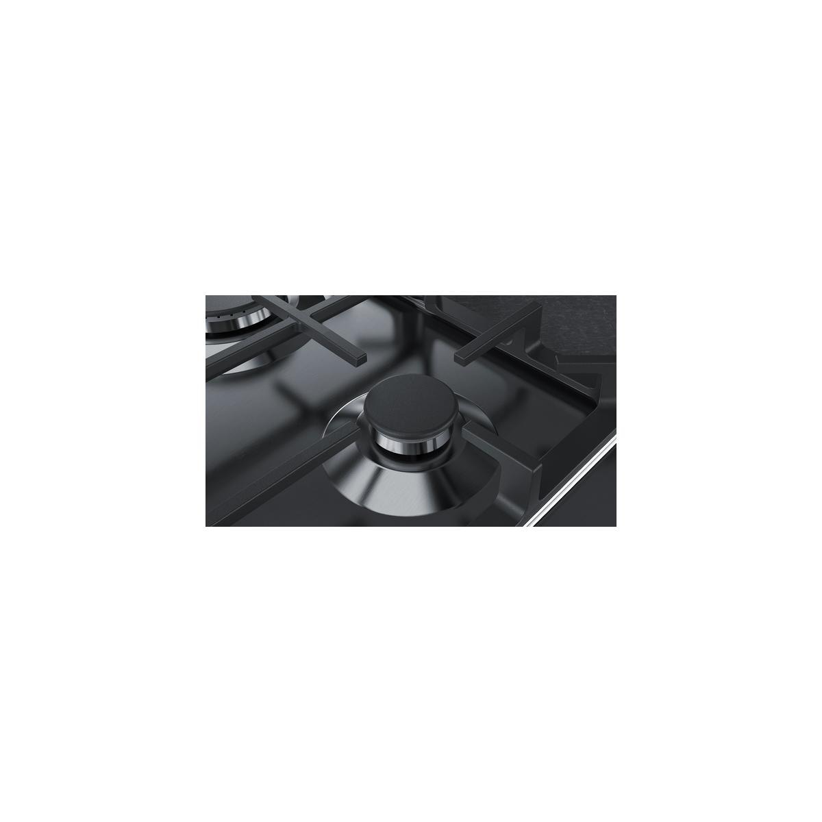 Das Gas-Kochfeld mit Designoberfläche aus Edelstahl und stufenweise regulierbarem FlameSelect.