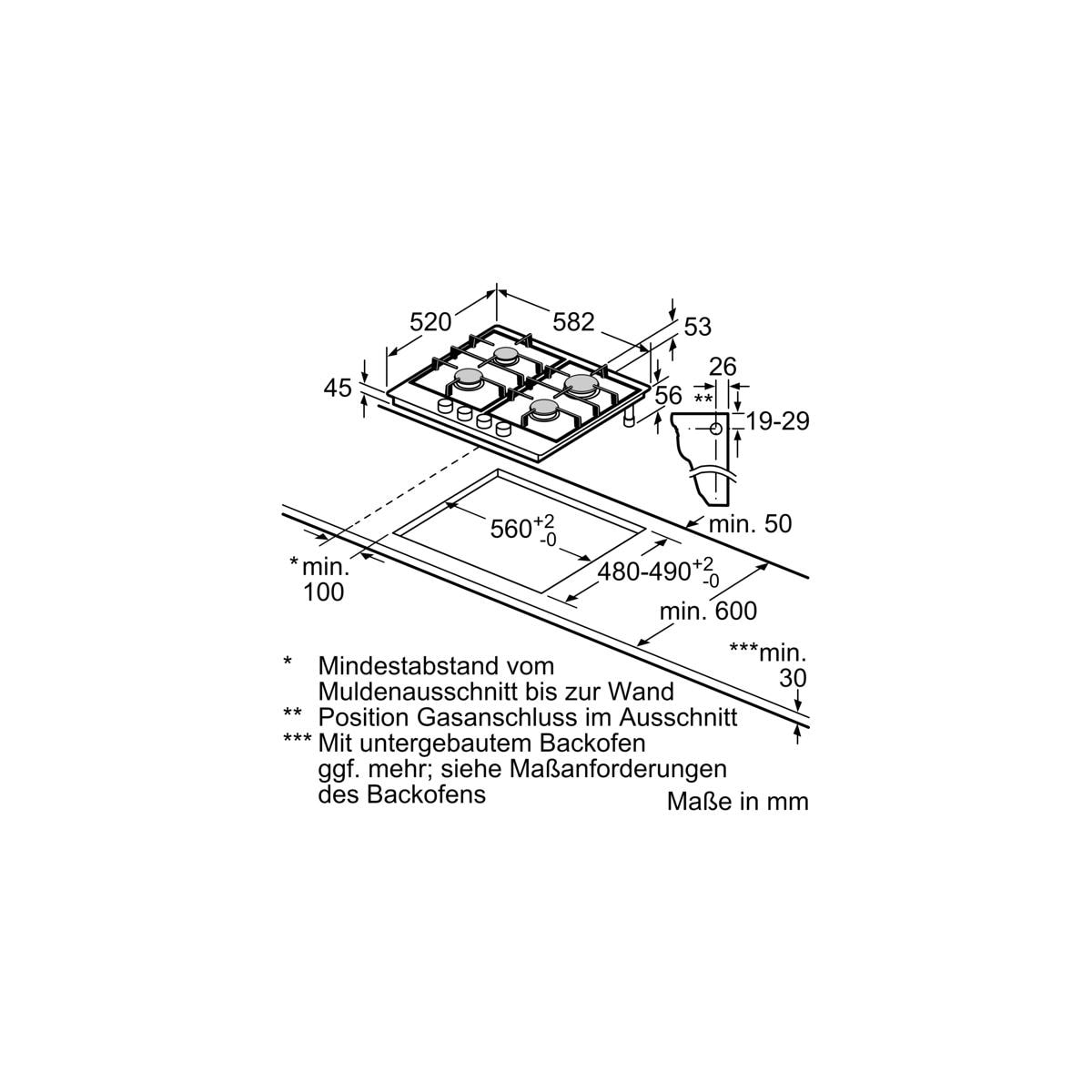 - Düsensatz für Flüssiggas-Düsen (28-30/37mbar) beiliegend. Düsen für alle anderen Gasarten können über den Kundendienst bestellt werden. Für einen Düsenwechsel wenden Sie sich bitte an den Kundendienst.