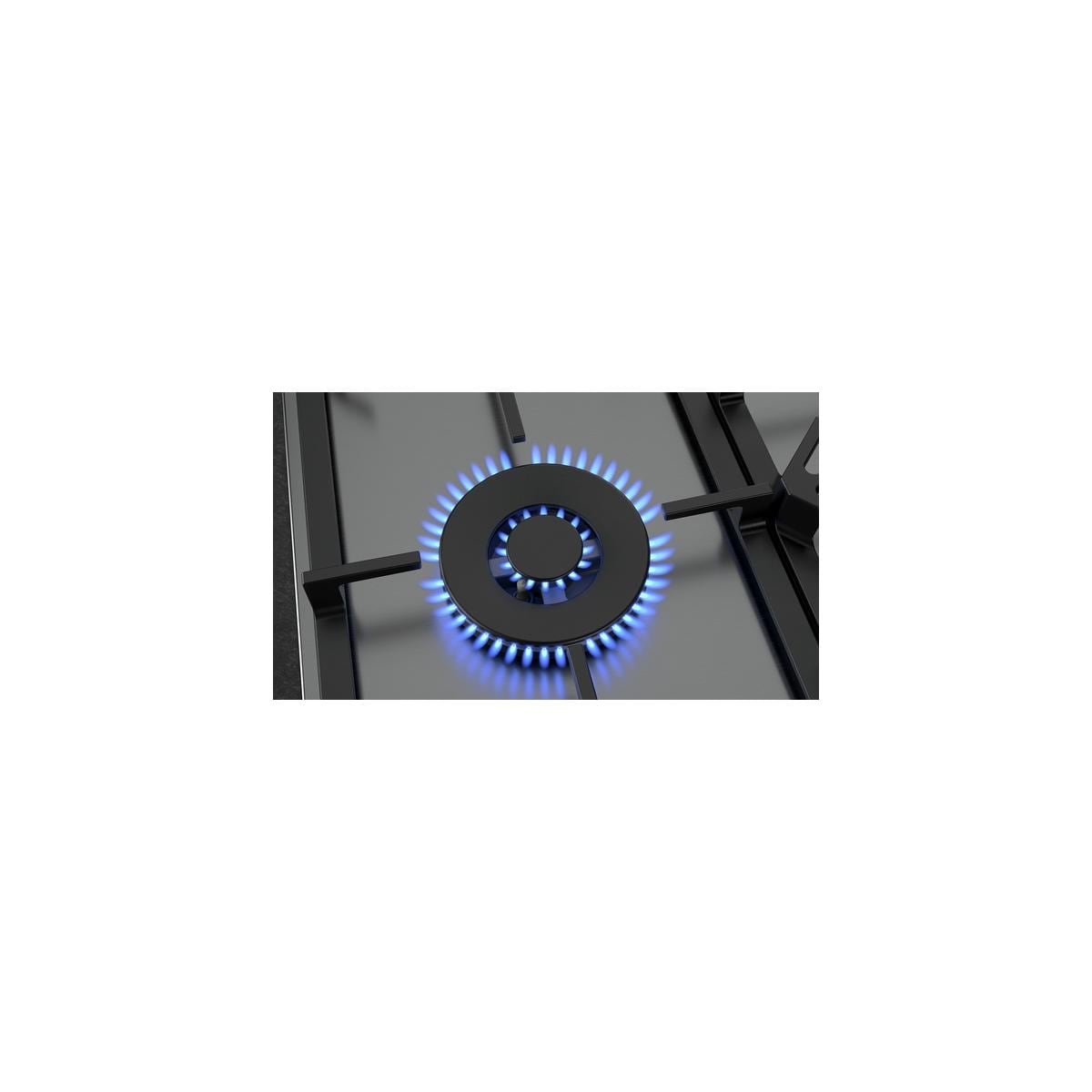 Das Gas-Kochfeld mit Designoberfläche aus Edelstahl und stufenweise regulierbarem FlameSelect.