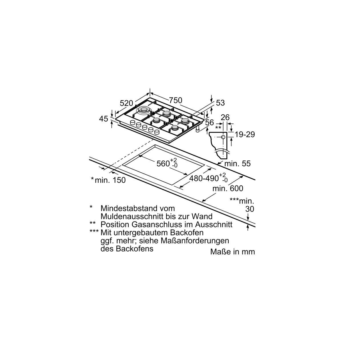 - Düsensatz für Flüssiggas-Düsen (28-30/37mbar) beiliegend. Düsen für alle anderen Gasarten können über den Kundendienst bestellt werden. Für einen Düsenwechsel wenden Sie sich bitte an den Kundendienst.