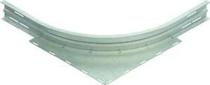 Eckanbaustück, für Weitspannkabelrinnen und Weitspannkabelleitern, mit gesicktem, rundem und ungelochtem Seitenholm, jedoch mit Verbinderlochung für den Anschluss, sowie eingenietetem Auflageblech, zur kostengünstigen Herstellung von 90° Eck- und T-Verbindungen, breitenunabhängiges Bauteil zur Kombination unterschiedlicher Breiten und Abgänge und zur flexibleren Gestaltung der Trassenwege bei der Montage vor Ort, bandverzinkt nach DIN EN 10346, einschließlich tauchfeuerverzinkten anteilmäßigem Befestigungszubehör. Der Formstückradius ist so ausgelegt, dass die Verlegung der Kabel gemäß DIN/VDE 0298 Teil 3 erfolgen kann.