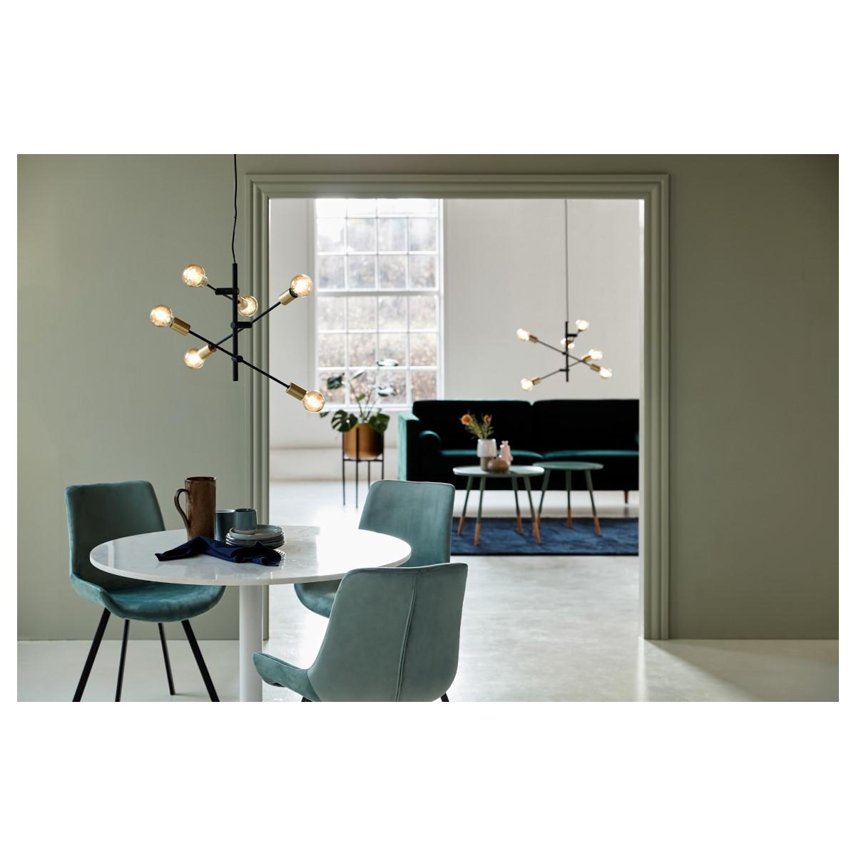 Bei der Josefine Pendelleuchte handelt es sich um eine schöne Neuinterpretation des traditionellen Kronleuchters, wobei die verstellbaren Leuchtenköpfe, die im Radius von 360° gedreht werden können, der Einrichtung eine ganz neue Optik verleihen.