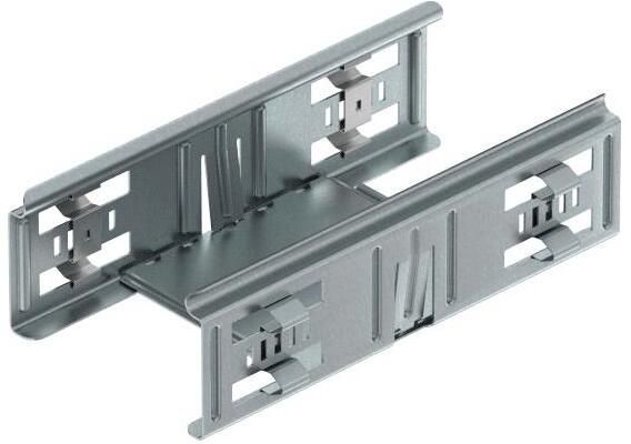 Kabelrinnenverbinder mit Schnellbefestigung für die schraubenlose Verbindung von gelochten Kabelrinnen mit der Seitenhöhe 60 mm.