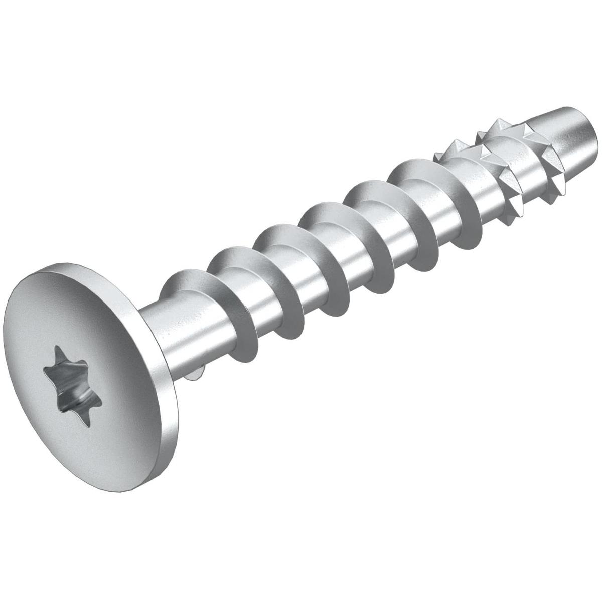 Schraubanker zur direkten Montage ohne Dübel in gerissenem und ungerissenem Beton sowie Mauerwerk. Mit großem Rundkopf für die Befestigung von Montage- und Profilschienen. Torx-Antrieb T30.