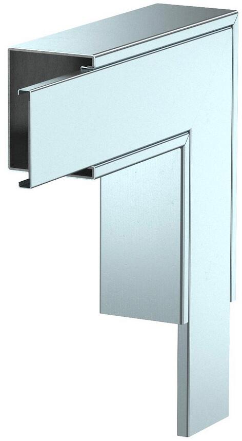 Flachwinkel mit intumeszierendem Brandschutzgewebe für Installationskanal PYROLINE® Rapid PLM. Geeignet für die direkte Wand- und Deckenmontage, Montage unterhalb von Systemböden und auf Tragsystemen. Werkzeuglose Stoßstellenmontage mit Stoßstellenverbinder PLM SI. Der Deckel wird werkzeuglos aufgerastet und ermöglicht eine schnelle Revision und Nachbelegung. Deckelüberstand ermöglicht versetzte Deckelmontage für durchgängigen Potentialausgleich der gesamten Kanalstrecke.