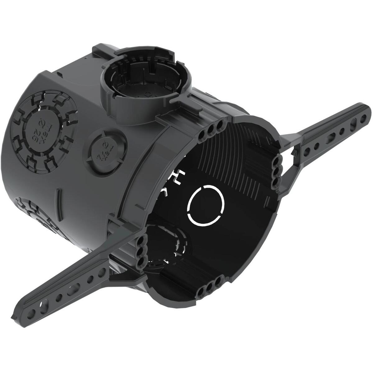 - Kurzbeschreibung UP Geräte-Verbindungsdose mit Nagellaschen Ø60mm, H66mm Polypropylen tiefschwarz