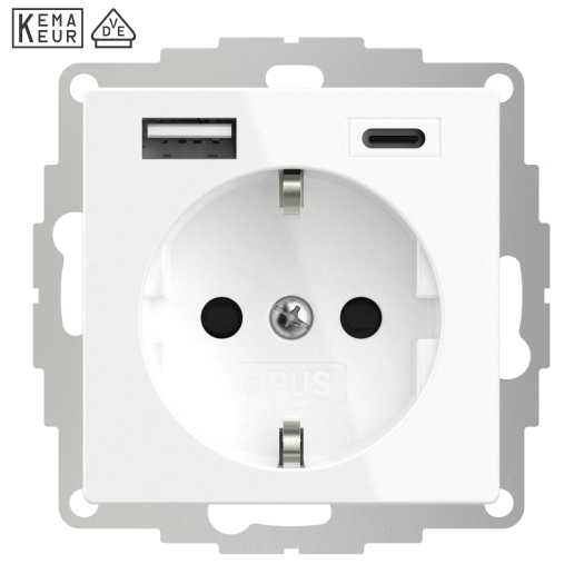 OPUS 55 USB A/C-Steckdose mit Schutzkontakt, polarweiß