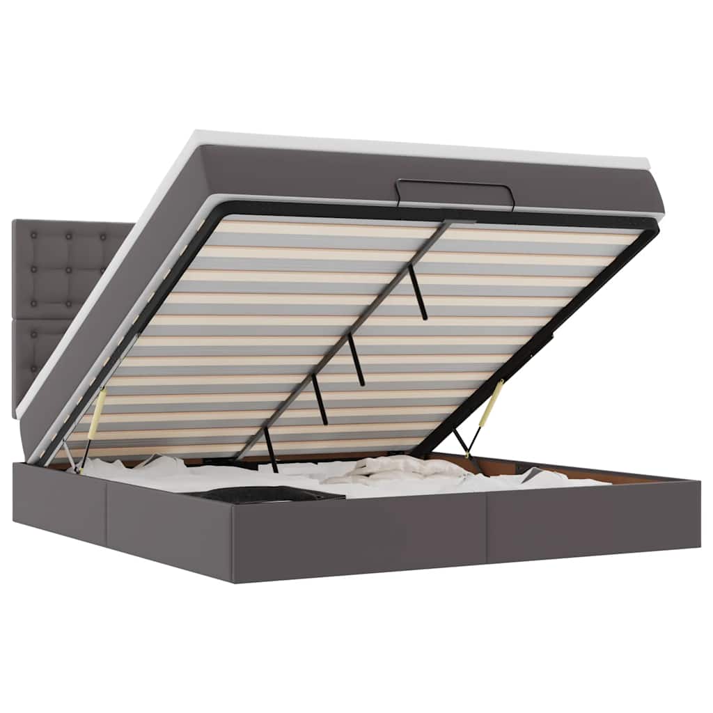Genieße mit diesem Ottomanbett mit Matratze eine erholsame Nachtruhe! Es bietet dir sowohl eine Stauraumlösung als auch ein komfortables Schlaferlebnis. Langlebig und pflegeleicht: Kunstleder ist ein äußerst langlebiges und schmutzabweisendes Material, das sich mit einem feuchten Tuch leicht reinigen lässt. Durch die glatte Oberfläche weist es die Eleganz von Echtleder auf.Taschenfederkernmatratze: Diese Matratze hat einzelne Taschenfedern, die unabhängig voneinander arbeiten. Somit bietet sie dir optimalen Halt, indem sie auf Druckstellen in jedem Bereich unabhängig reagieren. Diese Konstruktion verhindert das "Zusammenrollen" und reduziert die Bewegungsübertragung im Vergleich zu alten Federkernmatratzen. Jede Taschenfeder stützt die Körper-Druckstellen individuell.Großer Stauraum unter dem Bett: Dank des hydraulischen Hebemechanismus bietet der Bettrahmen reichlich Stauraum unter dem Bett, sodass der Platz maximiert wird, ohne zusätzliche Bodenfläche zu beanspruchen. Mit einem einfachen Zug am Griff hebt sich der Lattenrost sanft an, sodass du deine Gegenstände schnell und mühelos herausholen kannst.Komfortable Matratzenauflage: Die Auflage verbessert den Halt und den Komfort mit ihrer weichen, atmungsaktiven Oberfläche und verlängert gleichzeitig die Lebensdauer deiner Matratze. Der abnehmbare Bezug ermöglicht ein einfaches Waschen, was die Pflege der Matratze zum Kinderspiel macht.LED-Beleuchtung für ein angenehmes Ambiente: Dieses Bett verfügt über LED-Leuchten, die einfach eingestellt werden können, um eine persönliche Lichtshow zu kreieren. Du kannst die Modi, Farben und Helligkeit anpassen, um das Ambiente in deinem Wohnraum zu verbessern. Gut zu wissen:Das Produkt verfügt über einen USB-Anschluss, für den eine zertifizierte 5V-USB-Stromquelle erforderlich ist (nicht im Lieferumfang enthalten).Aus hygienischen Gründen kann die Matratze nicht zurückgegeben werden, wenn die Verpackung entfernt oder geöffnet wurde.Nur der Teil mit dem Symbol kann geschnitten werden und nur der Teil mit dem USB funktioniert auch weiterhin.