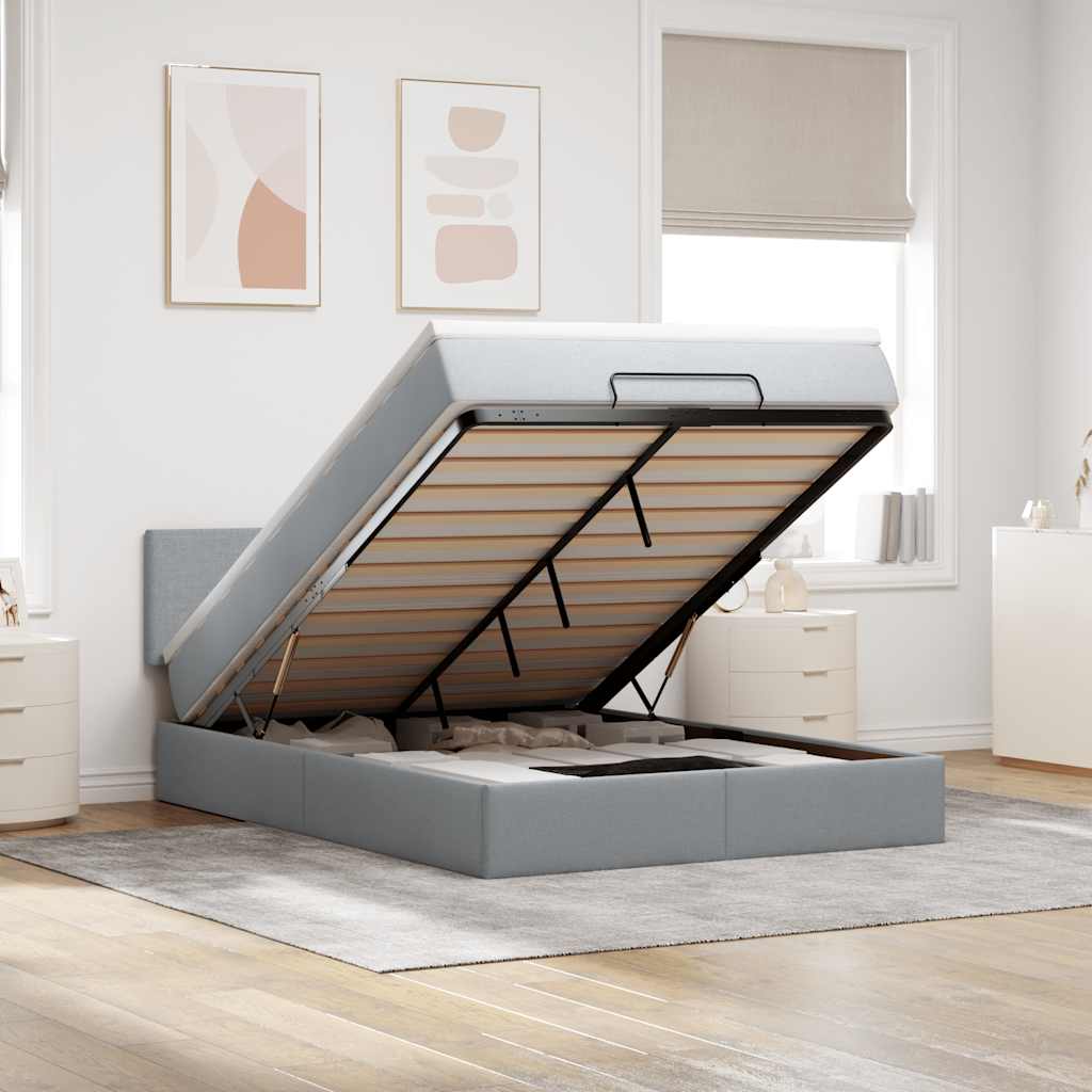 Genieße mit diesem Ottomanbett mit Matratze eine erholsame Nachtruhe! Es bietet dir sowohl eine Stauraumlösung als auch ein komfortables Schlaferlebnis. Weiches und strapazierfähiges Material: Polyestergewebe fühlt sich weich an, ist atmungsaktiv sowie strapazierfähig und sorgt so für höchsten Komfort und Behaglichkeit.Taschenfederkernmatratze: Diese Matratze hat einzelne Taschenfedern, die unabhängig voneinander arbeiten. Somit bietet sie dir optimalen Halt, indem sie auf Druckstellen in jedem Bereich unabhängig reagieren. Diese Konstruktion verhindert das "Zusammenrollen" und reduziert die Bewegungsübertragung im Vergleich zu alten Federkernmatratzen. Jede Taschenfeder stützt die Körper-Druckstellen individuell.Großer Stauraum unter dem Bett: Dank des hydraulischen Hebemechanismus bietet der Bettrahmen reichlich Stauraum unter dem Bett, sodass der Platz maximiert wird, ohne zusätzliche Bodenfläche zu beanspruchen. Mit einem einfachen Zug am Griff hebt sich der Lattenrost sanft an, sodass du deine Gegenstände schnell und mühelos herausholen kannst.Komfortable Matratzenauflage: Die Auflage verbessert den Halt und den Komfort mit ihrer weichen, atmungsaktiven Oberfläche und verlängert gleichzeitig die Lebensdauer deiner Matratze. Der abnehmbare Bezug ermöglicht ein einfaches Waschen, was die Pflege der Matratze zum Kinderspiel macht.LED-Beleuchtung für ein angenehmes Ambiente: Dieses Bett verfügt über LED-Leuchten, die einfach eingestellt werden können, um eine persönliche Lichtshow zu kreieren. Du kannst die Modi, Farben und Helligkeit anpassen, um das Ambiente in deinem Wohnraum zu verbessern. Gut zu wissen:Das Produkt verfügt über einen USB-Anschluss, für den eine zertifizierte 5V-USB-Stromquelle erforderlich ist (nicht im Lieferumfang enthalten).Aus hygienischen Gründen kann die Matratze nicht zurückgegeben werden, wenn die Verpackung entfernt oder geöffnet wurde.Nur der Teil mit dem Symbol kann geschnitten werden und nur der Teil mit dem USB funktioniert auch weiterhin.