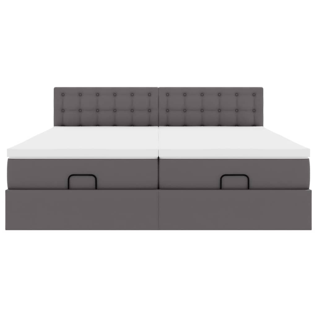 Genieße mit diesem Ottomanbett mit Matratzen eine erholsame Nachtruhe! Es bietet dir sowohl eine Stauraumlösung als auch ein komfortables Schlaferlebnis. Langlebig und pflegeleicht: Kunstleder ist ein äußerst langlebiges und schmutzabweisendes Material, das sich mit einem feuchten Tuch leicht reinigen lässt. Durch die glatte Oberfläche weist es die Eleganz von Echtleder auf.Taschenfederkernmatratze: Diese Matratze hat einzelne Taschenfedern, die unabhängig voneinander arbeiten. Somit bietet sie dir optimalen Halt, indem sie auf Druckstellen in jedem Bereich unabhängig reagieren. Diese Konstruktion verhindert das "Zusammenrollen" und reduziert die Bewegungsübertragung im Vergleich zu alten Federkernmatratzen. Jede Taschenfeder stützt die Körper-Druckstellen individuell.Großer Stauraum unter dem Bett: Dank des hydraulischen Hebemechanismus bietet der Bettrahmen reichlich Stauraum unter dem Bett, sodass der Platz maximiert wird, ohne zusätzliche Bodenfläche zu beanspruchen. Mit einem einfachen Zug am Griff hebt sich der Lattenrost sanft an, sodass du deine Gegenstände schnell und mühelos herausholen kannst.Komfortable Matratzenauflage: Die Auflage verbessert den Halt und den Komfort mit ihrer weichen, atmungsaktiven Oberfläche und verlängert gleichzeitig die Lebensdauer deiner Matratze. Der abnehmbare Bezug ermöglicht ein einfaches Waschen, was die Pflege der Matratze zum Kinderspiel macht.LED-Beleuchtung für ein angenehmes Ambiente: Dieses Bett verfügt über LED-Leuchten, die einfach eingestellt werden können, um eine persönliche Lichtshow zu kreieren. Du kannst die Modi, Farben und Helligkeit anpassen, um das Ambiente in deinem Wohnraum zu verbessern. Gut zu wissen:Dieses Doppelbett besteht aus zwei Einzelbetten, sodass jeder Lattenrost unabhängig voneinander angehoben werden kann.Das Produkt verfügt über einen USB-Anschluss, für den eine zertifizierte 5V-USB-Stromquelle erforderlich ist (nicht im Lieferumfang enthalten).Aus hygienischen Gründen kann die Matratze nicht zurückgegeben werden, wenn die Verpackung entfernt oder geöffnet wurde.Nur der Teil mit dem Symbol kann geschnitten werden und nur der Teil mit dem USB funktioniert auch weiterhin.