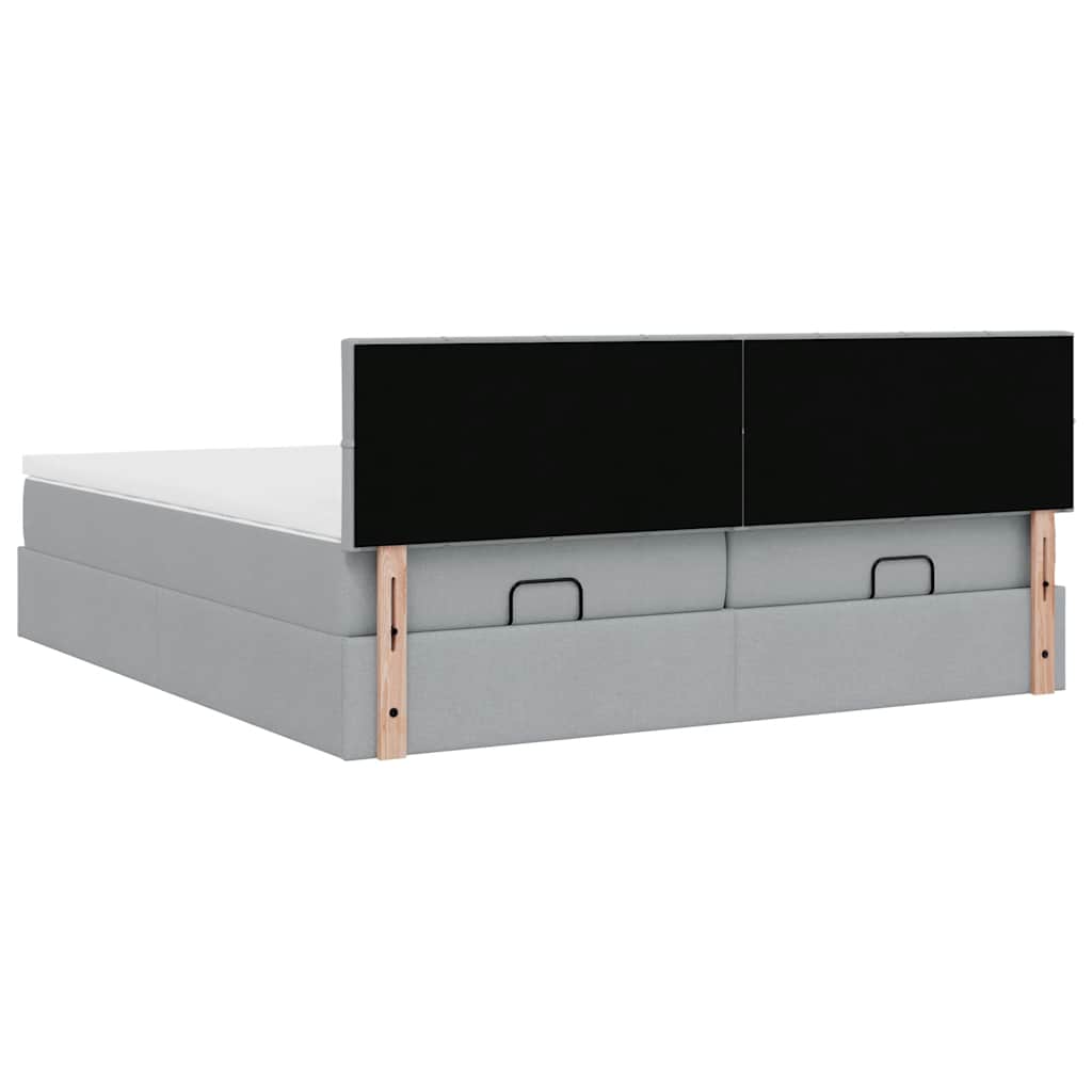 Genieße mit diesem Ottomanbett mit Matratzen eine erholsame Nachtruhe! Es bietet dir sowohl eine Stauraumlösung als auch ein komfortables Schlaferlebnis. Weiches und strapazierfähiges Material: Polyestergewebe fühlt sich weich an, ist atmungsaktiv sowie strapazierfähig und sorgt so für höchsten Komfort und Behaglichkeit.Taschenfederkernmatratze: Diese Matratze hat einzelne Taschenfedern, die unabhängig voneinander arbeiten. Somit bietet sie dir optimalen Halt, indem sie auf Druckstellen in jedem Bereich unabhängig reagieren. Diese Konstruktion verhindert das "Zusammenrollen" und reduziert die Bewegungsübertragung im Vergleich zu alten Federkernmatratzen. Jede Taschenfeder stützt die Körper-Druckstellen individuell.Großer Stauraum unter dem Bett: Dank des hydraulischen Hebemechanismus bietet der Bettrahmen reichlich Stauraum unter dem Bett, sodass der Platz maximiert wird, ohne zusätzliche Bodenfläche zu beanspruchen. Mit einem einfachen Zug am Griff hebt sich der Lattenrost sanft an, sodass du deine Gegenstände schnell und mühelos herausholen kannst.Komfortable Matratzenauflage: Die Auflage verbessert den Halt und den Komfort mit ihrer weichen, atmungsaktiven Oberfläche und verlängert gleichzeitig die Lebensdauer deiner Matratze. Der abnehmbare Bezug ermöglicht ein einfaches Waschen, was die Pflege der Matratze zum Kinderspiel macht.LED-Beleuchtung für ein angenehmes Ambiente: Dieses Bett verfügt über LED-Leuchten, die einfach eingestellt werden können, um eine persönliche Lichtshow zu kreieren. Du kannst die Modi, Farben und Helligkeit anpassen, um das Ambiente in deinem Wohnraum zu verbessern. Gut zu wissen:Dieses Doppelbett besteht aus zwei Einzelbetten, sodass jeder Lattenrost unabhängig voneinander angehoben werden kann.Das Produkt verfügt über einen USB-Anschluss, für den eine zertifizierte 5V-USB-Stromquelle erforderlich ist (nicht im Lieferumfang enthalten).Aus hygienischen Gründen kann die Matratze nicht zurückgegeben werden, wenn die Verpackung entfernt oder geöffnet wurde.Nur der Teil mit dem Symbol kann geschnitten werden und nur der Teil mit dem USB funktioniert auch weiterhin.