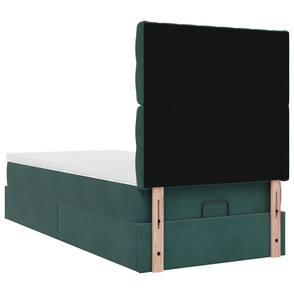 Preview: ARDEBO.de - Ottoman-Bett mit Matratzen & LEDs Dunkelgrün 100x200 cm Samt