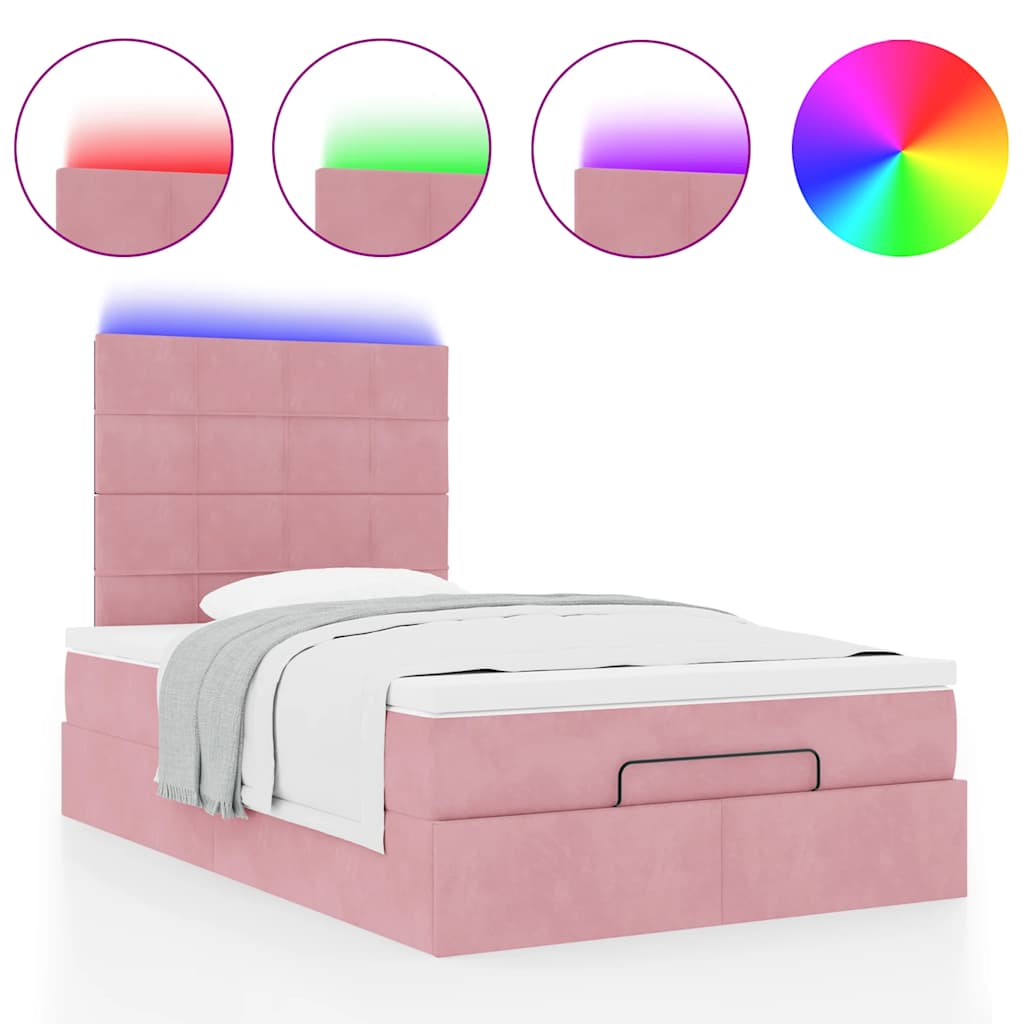 Genieße mit diesem Ottomanbett mit Matratzen eine erholsame Nachtruhe! Es bietet dir sowohl eine Stauraumlösung als auch ein komfortables Schlaferlebnis.Weiches und komfortables Material: Der Samtstoff hat eine weiche und sanfte Oberfläche, die sich angenehm auf der Haut anfühlt und höchsten Komfort bietet.Taschenfederkernmatratze: Diese Matratze hat einzelne Taschenfedern, die unabhängig voneinander arbeiten. Somit bietet sie dir optimalen Halt, indem sie auf Druckstellen in jedem Bereich unabhängig reagieren. Diese Konstruktion verhindert das "Zusammenrollen" und reduziert die Bewegungsübertragung im Vergleich zu alten Federkernmatratzen. Jede Taschenfeder stützt die Körper-Druckstellen individuell.Großer Stauraum unter dem Bett: Dank des hydraulischen Hebemechanismus bietet der Bettrahmen reichlich Stauraum unter dem Bett, sodass der Platz maximiert wird, ohne zusätzliche Bodenfläche zu beanspruchen. Mit einem einfachen Zug am Griff hebt sich der Lattenrost sanft an, sodass du deine Gegenstände schnell und mühelos herausholen kannst.Komfortable Matratzenauflage: Die Auflage verbessert den Halt und den Komfort mit ihrer weichen, atmungsaktiven Oberfläche und verlängert gleichzeitig die Lebensdauer deiner Matratze. Der abnehmbare Bezug ermöglicht ein einfaches Waschen, was die Pflege der Matratze zum Kinderspiel macht.LED-Beleuchtung für ein angenehmes Ambiente: Dieses Bett verfügt über LED-Leuchten, die einfach eingestellt werden können, um eine persönliche Lichtshow zu kreieren. Du kannst die Modi, Farben und Helligkeit anpassen, um das Ambiente in deinem Wohnraum zu verbessern. Gut zu wissen:Das Produkt verfügt über einen USB-Anschluss, für den eine zertifizierte 5V-USB-Stromquelle erforderlich ist (nicht im Lieferumfang enthalten).Aus hygienischen Gründen kann die Matratze nicht zurückgegeben werden, wenn die Verpackung entfernt oder geöffnet wurde.Nur der Teil mit dem Symbol kann geschnitten werden und nur der Teil mit dem USB funktioniert auch weiterhin.