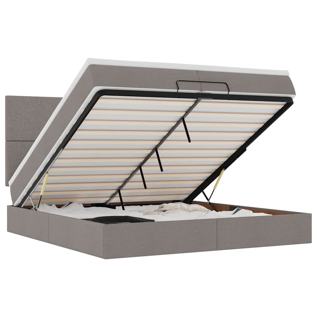 Mobile Preview: ARDEBO.de - Ottoman-Bett mit Matratzen Taupe 200x200 cm Stoff