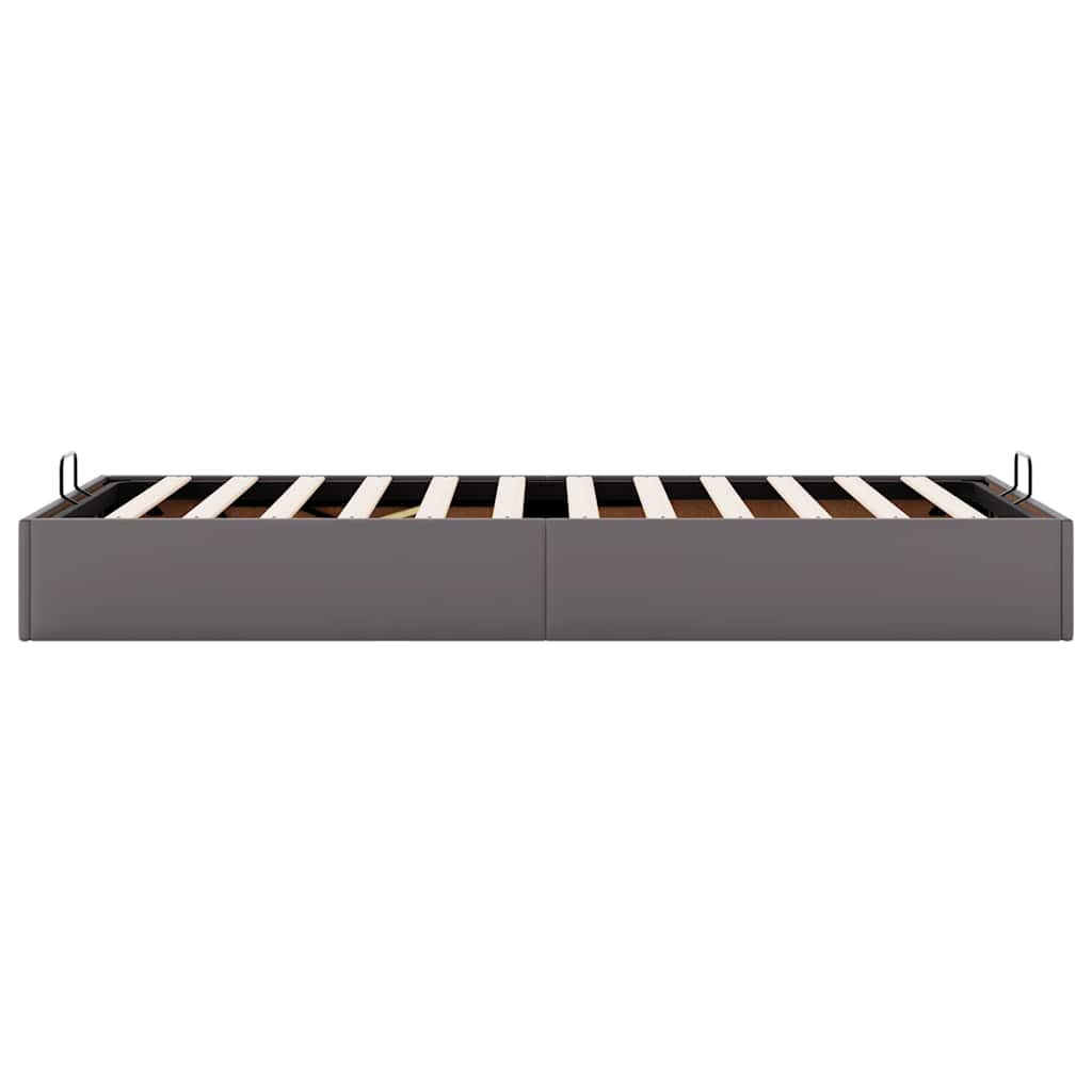 Dieses Ottomanbett verbindet nahtlos moderne Ästhetik mit praktischer Funktionalität und bietet dir sowohl eine Aufbewahrungslösung als auch ein komfortables Schlaferlebnis. Langlebig und pflegeleicht: Kunstleder ist ein äußerst langlebiges und schmutzabweisendes Material, das sich mit einem feuchten Tuch leicht reinigen lässt. Durch die glatte Oberfläche weist es die Eleganz von Echtleder auf.Reichlich Stauraum unter dem Bett: Dieser Bettrahmen verfügt über einen geräumigen Stauraum unter dem Bett, der den Platz maximiert, ohne zusätzliche Bodenfläche zu benötigen. Er bietet reichlich Platz zur Aufbewahrung von Gegenständen wie zusätzlichen Bettdecken, Kissen und saisonaler Kleidung und ist somit ideal für kleinere oder beengtere Räume.Bequemer Hebemechanismus: Der integrierte hydraulische Hebemechanismus ermöglicht einen einfachen Zugriff auf deine unter dem Bett verstauten Gegenstände. Durch einfaches Ziehen am Griff hebt sich der Lattenrost mühelos an, sodass du deine Gegenstände schnell und mühelos entnehmen kannst.Kein Boxspringbett erforderlich: Der Bettgestell ist mit einem Lattenrost ausgestattet, der deiner Matratze eine hervorragende Unterstützung und Atmungsaktivität bietet, sodass du kein Boxspringbett mehr benötigst. Gut zu wissen:Bei diesem Bett ist keine Matratze im Lieferumfang enthalten. Wir bieten jedoch eine große Auswahl an Matratzen an. Du kannst in unserem Shop nach einer passenden Matratze suchen.