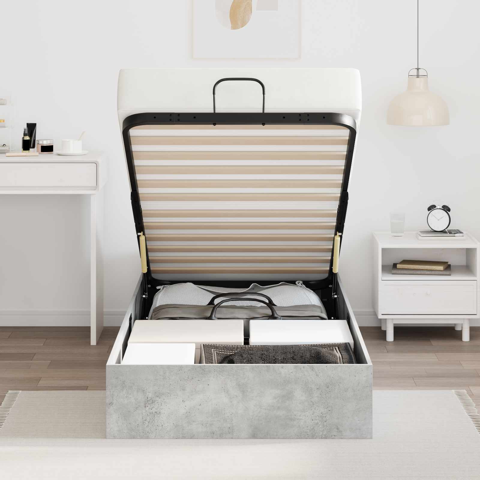 Dieses moderne Ottoman-Bettgestell kombiniert Style und Funktionalität und verwandelt dein Schlafzimmer mit klaren Linien und einem eleganten Touch. Es ist ideal für alle, die ihren Wohnraum aufwerten möchten und bietet sowohl praktische Vorteile als auch eine schicke Optik. Genieße den coolen modernen Look, der zu jeder Einrichtung passt. Holzspanplattenkonstruktion: Die stabile Holzspanplatte sorgt für eine langlebige Struktur und eine glatte Oberfläche, die perfekt für Schlafzimmermöbel geeignet ist. Gasliftmechanismus: Der praktische Gaslift hebt die Matratze mühelos, sodass du leicht zum Stauraum darunter kommst. So ist es super bequem und minimiert die Belastung. Geräumiger Stauraum: Mit viel Platz unter dem Bett ist dieser Rahmen perfekt, um Bettwäsche, Kleidung oder andere Dinge ordentlich zu verstauen und den Raum aufgeräumt zu halten. Modernes geometrisches Design: Die quadratischen Griffe an beiden Enden geben dem Bett einen trendigen Look und passen zu verschiedenen Schlafzimmerstilen. Einfache Montage: Der Aufbau ist einfach und du brauchst nur zwei Personen und einen Schraubendreher, was es für die meisten Leute leicht macht.