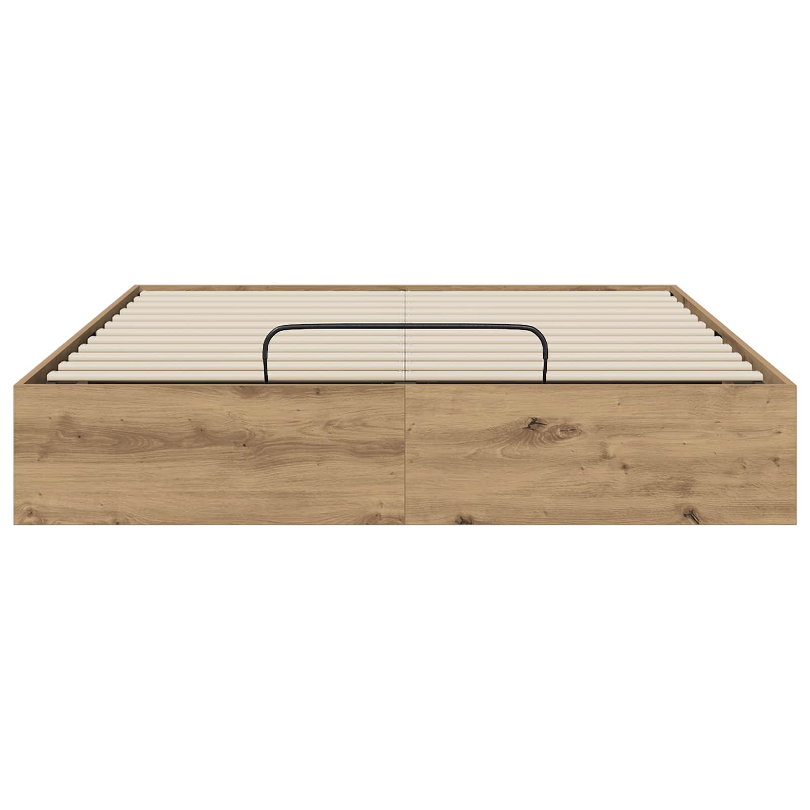 Dieses moderne Ottoman-Bettgestell kombiniert Style und Funktionalität und verwandelt dein Schlafzimmer mit klaren Linien und einem eleganten Touch. Es ist ideal für alle, die ihren Wohnraum aufwerten möchten und bietet sowohl praktische Vorteile als auch eine schicke Optik. Genieße den coolen modernen Look, der zu jeder Einrichtung passt. Holzspanplattenkonstruktion: Die stabile Holzspanplatte sorgt für eine langlebige Struktur und eine glatte Oberfläche, die perfekt für Schlafzimmermöbel geeignet ist. Gasliftmechanismus: Der praktische Gaslift hebt die Matratze mühelos, sodass du leicht zum Stauraum darunter kommst. So ist es super bequem und minimiert die Belastung. Geräumiger Stauraum: Mit viel Platz unter dem Bett ist dieser Rahmen perfekt, um Bettwäsche, Kleidung oder andere Dinge ordentlich zu verstauen und den Raum aufgeräumt zu halten. Modernes geometrisches Design: Die quadratischen Griffe an beiden Enden geben dem Bett einen trendigen Look und passen zu verschiedenen Schlafzimmerstilen. Einfache Montage: Der Aufbau ist einfach und du brauchst nur zwei Personen und einen Schraubendreher, was es für die meisten Leute leicht macht.