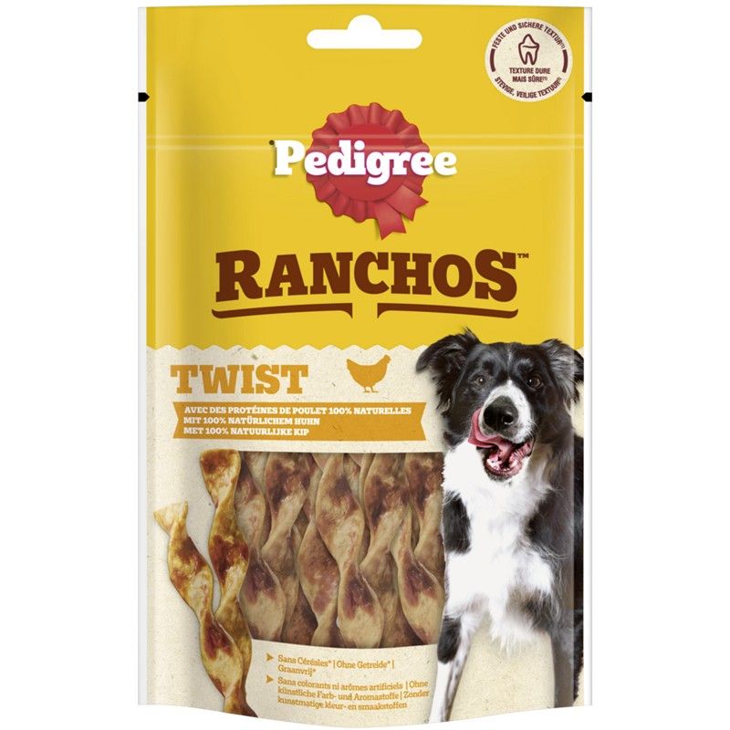 Handgefertigte, saftige Leckerlis - Pedigree Ranchos Twist sind köstlich knusprige Snacks, hergestellt mit 100% frischer Hühnerbrust und zerkleinerter RinderhautZusammensetzung: Rind- und Büffelrohhaut (45%), Huhn (16%), Tapiokastärke, Sojasauce, Mineralstoffe, Saccharose, pflanzliches Öl.Analytische Bestandteile (%): Protein: 81.0; Fettgehalt: 4.0; anorganischer Stoff: 2.5; Rohfaser: 0.10.Brennwert: 376 kcal/100 g.Zusatzstoffe pro kg: Antioxidanzien.Fütterungsempfehlung: Kleine Hunde (4-9 kg) bis zu 6 Stück wöchentlich. Mittelgrosse Hunde (10-14 kg) bis zu 10 Stück wöchentlich. Mittelgrosse bis grosse Hunde (15-24 kg) bis zu 13 Stück wöchentlich. Grosse Hunde (25 kg und mehr) bis zu 19 Stück wöchentlich. Reduzieren Sie die Vollnahrung entsprechend. Nicht geeignet für Hunde unter 4 kg und Welpen unter 9 Monaten. Nach dem Öffnen innerhalb von 7 Tagen verfüttern. Ein Extranapf mit frischem Trinkwasser sollte immer bereitstehen. Bitte kühl und trocken lagern. Inverkehrbringer: MARS GmbH, Eitzer Straße 215, 27283 Verden (Aller), Tel.: 04231/940, E-Mail: kontakt@dep.mars.com