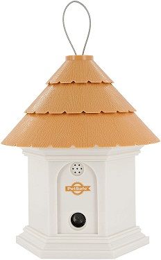 PetSafe Bellkontrolle für AußenbereicheSorgen Sie mit der PetSafe Bellkontrolle für Außenbereiche für Ruhe in Ihrem Garten. Hängen Sie die als Vogelhäuschen getarnte Bellkontrolle einfach an einen Baum oder platzieren Sie sie anderswo im Garten. Wenn Ihr Hund (oder der Ihres Nachbarn) bellt, wird ein sicherer aber für Hundeohren unangenehmer Ultraschallton ausgegeben, der für Menschen in der Regel nicht hörbar ist. Sobald der Hund aufhört zu bellen, stoppt auch der Ultraschallton. Da die Bellkontrolle das Bellen Ihres Hundes nur erkennt, wenn sich dieser innerhalb der Reichweite befindet, ist die richtige Platzierung ausschlaggebend. Das witterungsbeständige Produkt deckt 1.000 m² ab. Um einen größeren Bereich abzudecken, verwenden Sie einfach mehrere. Das Gerät wird mit einer 9V-Batterie betrieben. Diese hält je nach Gebrauch bis zu zwei Monate. Mit ein wenig Geduld unterlässt Ihr Hund das Bellen im Garten, damit Sie die Zeit im Freien gemeinsam in Ruhe genießen können. PetSafe trägt dazu bei, dass Ihr Haustier gesund, sicher und zufrieden ist.Ultraschall-Bellkontrolle – Wenn Ihr Hund (oder der Ihres Nachbarn) zu bellen beginnt, wird ein für ihn unangenehmer hoher Ultraschallton ausgegeben. Sobald das Bellen aufhört, stoppt auch der Ton.Unauffälliges Design – Hängen Sie eine oder mehrere als Vogelhäuschen getarnte Bellkontrollen im Garten verteilt in maximal 1,5 m Höhe auf.1.000 m² Abdeckung – Hängen Sie das Vogelhäuschen z. B. in einen Baum oder an einen Zaunpfosten im Garten. Es deckt 1.000 m² ab. Für größere Flächen einfach mehrere Geräte verwendenWasserdicht – Mit dieser Bellkontrolle können Sie übermäßiges Bellen zu jeder Jahreszeit und bei jeglichen Witterungsbedingungen unterbinden.Batteriebetrieb – Für den Betrieb ist eine 9V-Alkalibatterie erforderlich (nicht im Lieferumfang enthalten). Die Batterie hält je nach Gebrauch bis zu zwei Monate.Inverkehrbringer: Radio Systems PetSafe Europe Ltd, 2nd Floor Elgee Building, Market Square, Dundalk, A91 YR9X Louth, Irland, Tel.: 0800/1818847, E-Mail: arintl@petsafe.net