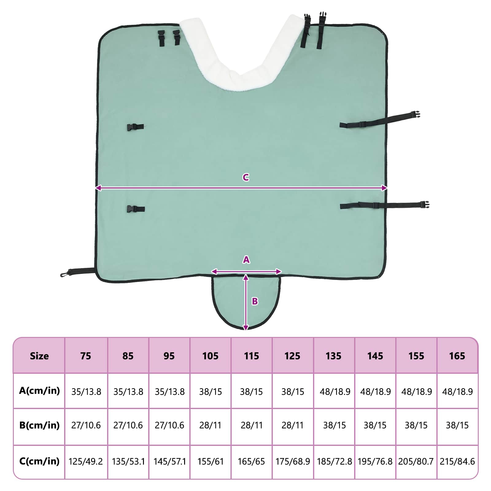 Diese Pferdedecke wurde so gemacht, dass sie bei kaltem Wetter Wärme und Schutz bietet. Ihr modernes Design mit klaren Linien und weniger Schnickschnack verbindet Funktionalität und gutes Aussehen. Ob an kalten Wintertagen oder nach einem langen Arbeitstag, dein Pferd bleibt in dieser Fleece-Decke bequem und warm. Das praktische Design macht sie vielseitig einsetzbar und sorgt dafür, dass sie für Wärme und Stil sorgt. Qualität Polarfleece: Hergestellt aus hochwertigem Polarfleece, bietet diese Decke warme und weiche Vorteile. Das Fleece ist leicht und erlaubt deinem Pferd, sich frei zu bewegen. Selbst an den kältesten Mittwintertagen bleibt es warm, perfekt für draußen. Funktionale Schnallen: Verstellbare Schnallen sorgen für einen perfekten Sitz, der sich jeder Pferdegröße anpasst. Der enge Sitz sorgt für Sicherheit und Komfort, sodass die Decke nicht verrutscht, egal wie dein Pferd sich bewegt. Das gibt dir ein sicheres Gefühl, wenn dein Pferd draußen ist. Vielseitiges Bezugdesign: Mit einem abnehmbaren Bezug ist die Decke easy zu reinigen. Der Bezug lässt sich einfach abnehmen und bei 30 Grad waschen, damit er frisch bleibt. So hast du mehr Zeit für dein Pferd und weniger Aufwand für die Reinigung. Wettergeschützte Ausführung: Dank des winddichten Designs schützt die Decke vor schlechtem Wetter. Sie hält windigen Bedingungen stand und sorgt dafür, dass dein Pferd sich gut fühlt und geschützt bleibt. Diese Haltbarkeit garantiert, dass die Decke den ganzen Winter für dich da ist. Praktisches Aufbewahrungsmerkmal: Das zusammenklappbare Design ist perfekt, um die Decke platzsparend zu verstauen, wenn du sie nicht brauchst. Sie lässt sich schnell zusammenfalten und nimmt wenig Platz weg. Dieses Feature ist super für kleine Räume, damit die Decke immer bereit ist, wenn es kalt wird.