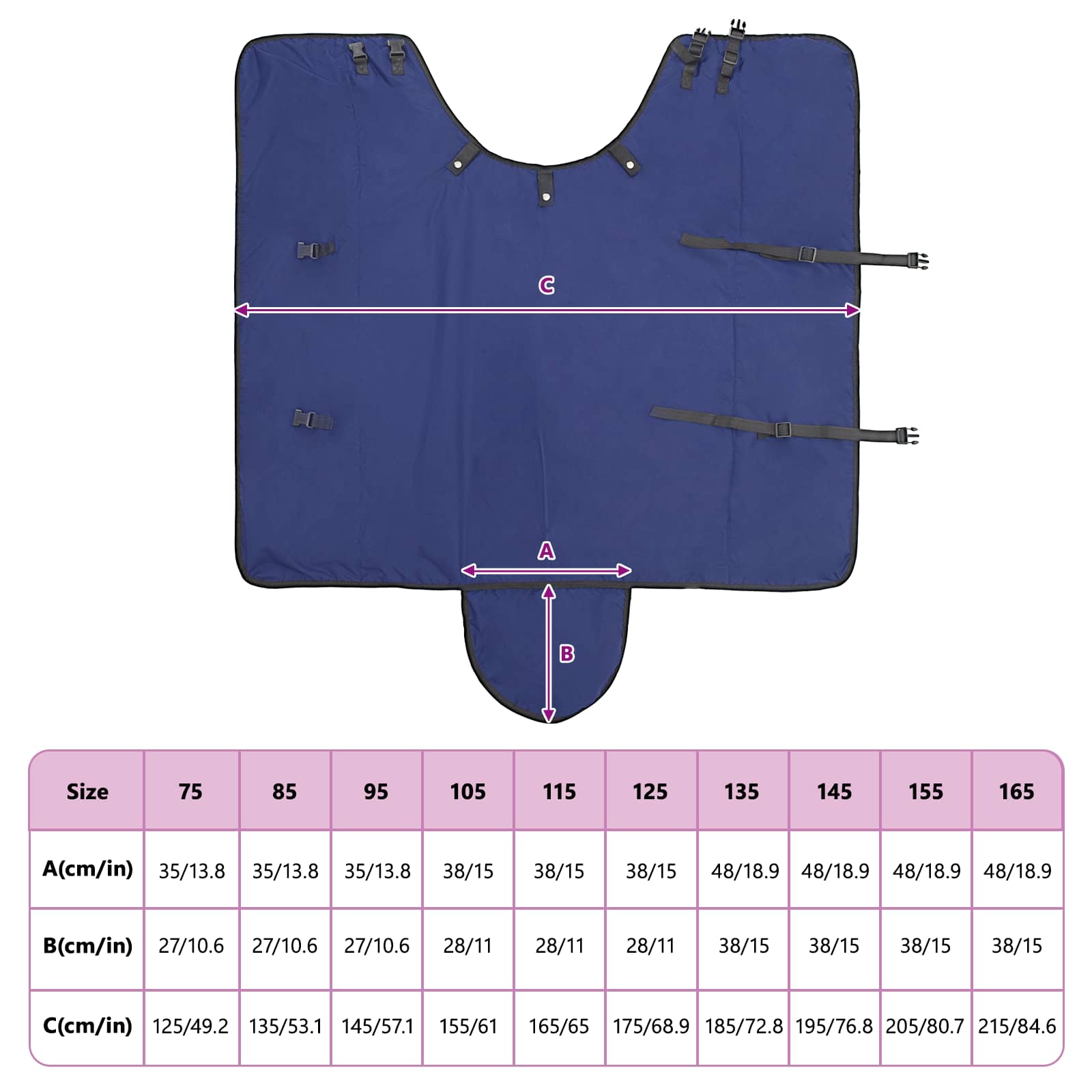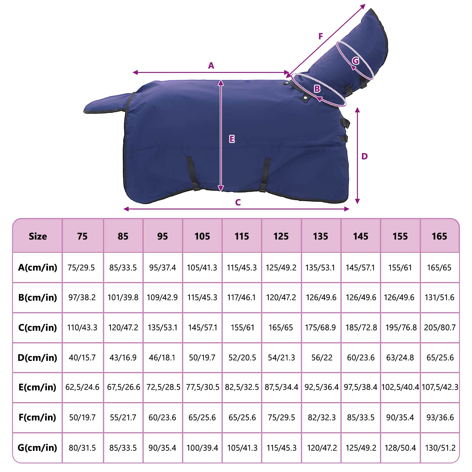 Diese moderne Pferdedecke ist eine coole und praktische Lösung für alle Reitsportfans, die stylischen Schutz für ihre Pferde wollen. Die klaren Linien und das schlichte Design bringen Eleganz in die Pferdepflege und passen super in jede Stallumgebung. Egal, ob du dein Pferd an kühlen Wintermorgen versorgst oder für gemütlichen Komfort beim Übernachten im Freien sorgst, diese Decke schafft das mit Bravour. Hochwertiges Polyester: Diese Decke besteht aus wasserdichtem Polyester, das perfekten Schutz vor Regen und Schnee bietet. Robustes Material hält den Elementen stand, sorgt für Wärme und hält dein Pferd auch bei schlechtem Wetter trocken. Das gibt dir ein gutes Gefühl. Zudem ist sie maschinenwaschbar und lässt sich einfach reinigen, was ihre Lebensdauer verlängert. Funktionale Designelemente: Der verstellbare Schnallenverschluss und die Klettverschlüsse bieten eine individuelle Passform. Diese Features sorgen für sicheren, bequemen Sitz und ermöglichen schnelles Anpassen, wenn sich das Wetter oder die Aktivitäten deines Pferdes ändern. Umfassende Eigenschaften: Mit einem abnehmbaren Bezug ist die Decke einfach zu pflegen. Sie hat auch eine Schwanzklappe, die hilft, Wind abzuweisen und Wärme zu speichern. Das klappbare Design macht die Lagerung bequem und besonders handlich in der Nebensaison. Breites Anwendungsspektrum: Die Decke ist für den Außeneinsatz gedacht und erfüllt verschiedene Anforderungen im Reitsport. Ob im Stall oder während des Reitens, sie hält dein Pferd warm, ohne die Beweglichkeit einzuschränken ? ein absolutes Must-have für jede Pferdepflege. Pflegehinweise: Dank der Maschinenwaschbarkeit ist die Pflege ein Kinderspiel. Diese praktische Funktion sorgt dafür, dass die Decke sauber bleibt und ihre Qualität auch in den Hauptnutzungszeiten bewahrt.