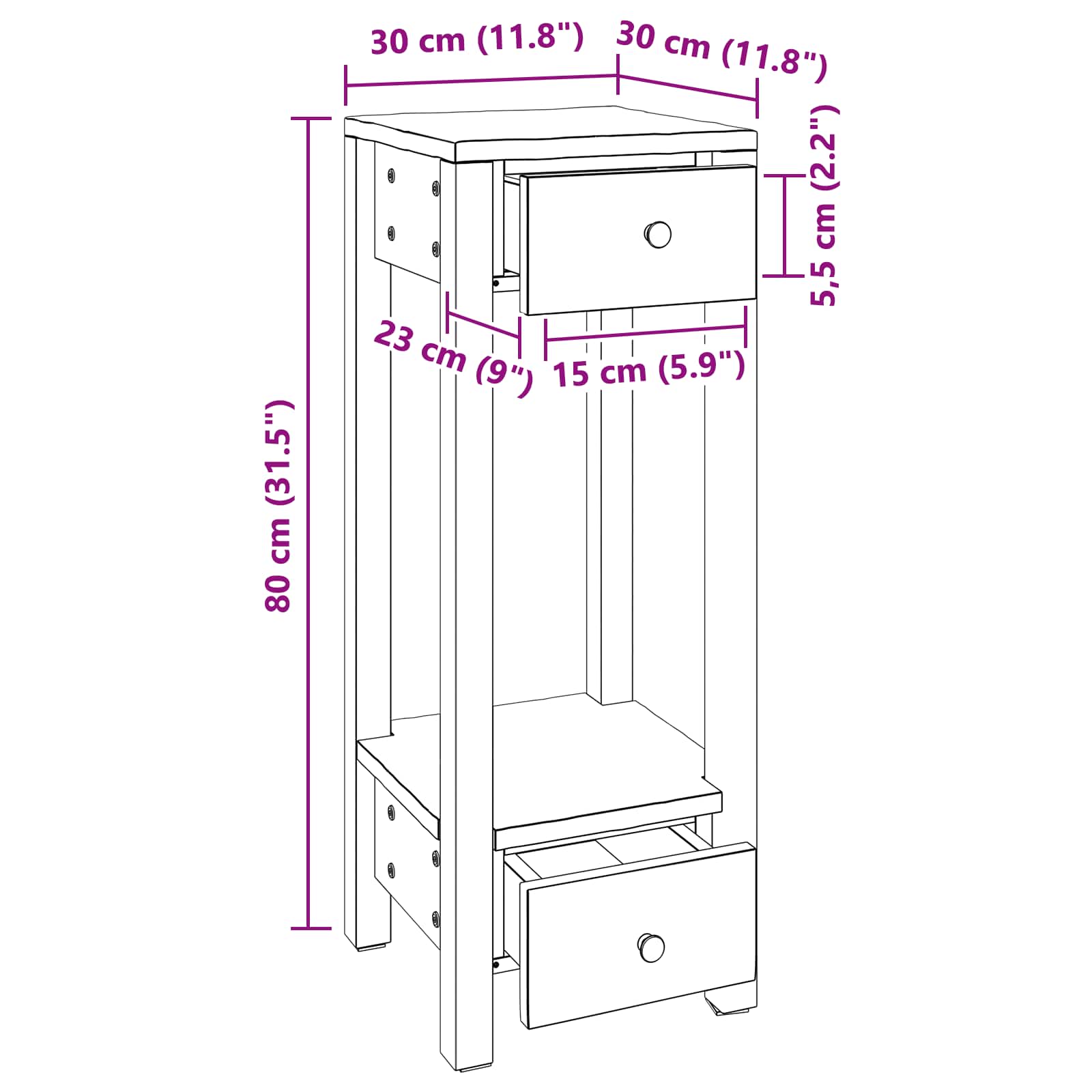 - Gesamtabmessungen: 30 x 30 x 80 cm (L x B x H)