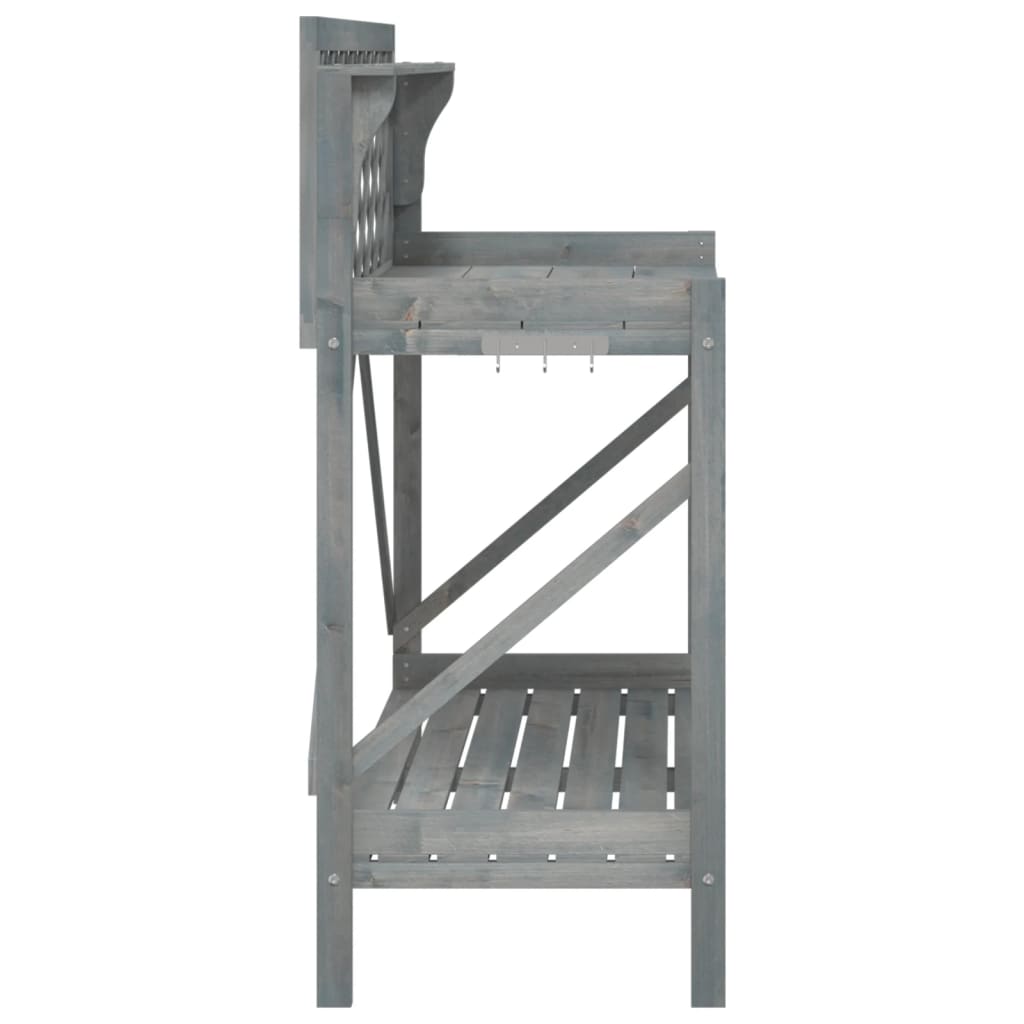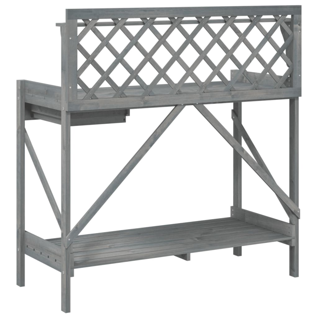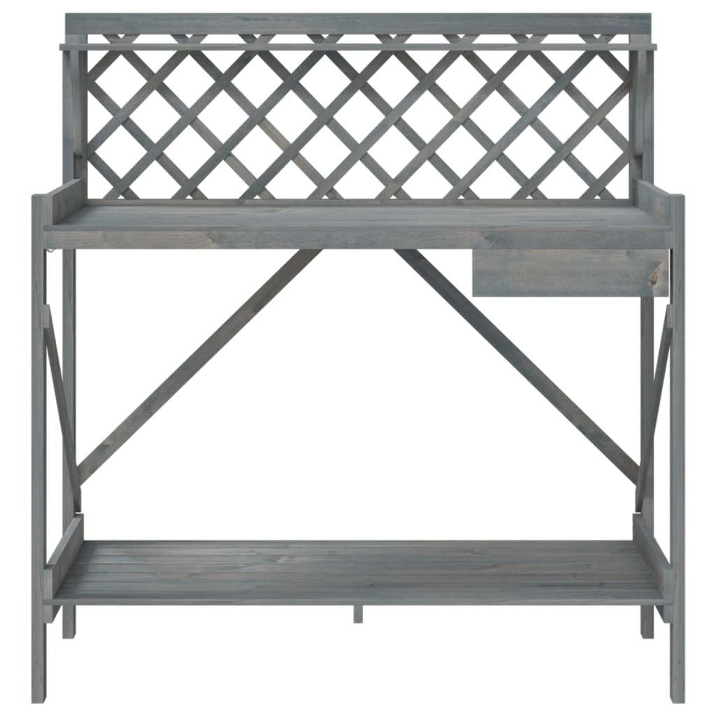 Dieser Pflanztisch eignet sich perfekt, um deine Topfpflanzen in den eigenen vier Wänden, im Garten, auf der Terrasse oder im Hinterhof ordentlich aufzubewahren und zur Schau zu stellen. Robust und langlebig: Dieser Umtopftisch ist aus massivem Tannenholz gefertigt, was ihn robust und langlebig macht. Vielseitiger Stauraum: Die Pflanzbank ist mit offenen Fächern, einer oberen Ablage, seitlichen Metallhaken und einer Schublade versehen und bietet dadurch reichlich Platz für verschiedene Sachen wie Gartengeräte, Erde, Dünger usw.Dekorationen: Die Umtopfbank ist mit einem Rankgitter ausgestattet, das Platz für Kletterpflanzen bietet. Dieses Rankgitter mit Rautenmuster lässt sich auch zum Aufhängen von Korbpflanzen oder als Deko-Element einsetzen, um deinen Garten zu verschönern.Gute Belüftung: Dank der unteren Ablage mit Latten-Design kann Wasser abfließen, um Verrottung zu verhindern und die Lebensdauer des Produkts zu verlängern.Vielseitig einsetzbar: Dieser Gärtnertisch verleiht jedem Raum einen Hauch Natürlichkeit und ist auch eine perfekte Bereicherung für deinen Innenhof, Garten, Gewächshaus oder Terrasse. Gut zu wissen:Wir empfehlen dir, deine Gartenmöbel mit einer wasserdichten Hülle zu schützen, um lange Zeit eine ansprechende Optik aufzuweisen. Achtung:Um ein Umkippen zu vermeiden, sollte dieses Produkt mit der mitgelieferten Wandhalterung gesichert werden.