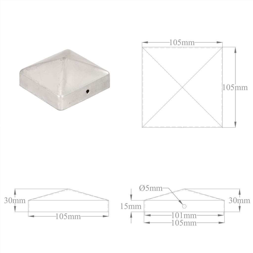 Diese Zaunpfostenaufsätze aus Metall sind für Terrassen, Veranden und den Einsatz in einer Vielzahl von Außenbauten vorgesehen. Die Pfostenkappe in Pyramidenform besteht aus MS-Metall, das langlebig und witterungsbeständig ist. Sie schützt Ihren Pfosten vollständig und verhindert den Verschleiß der Pfostenspitze. Dieser Pfostenaufsatz ist für quadratische 101-mm-Pfosten geeignet.