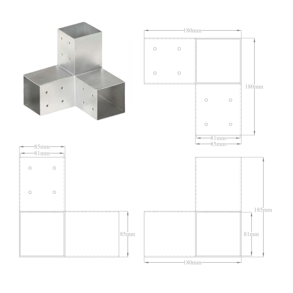 Mit unseren Pfostenecken können Sie Außenbauten wie Pavillons und Überdachungen in Ihrem Garten individuell gestalten und bauen. Mit diesem galvanisch verzinktem Verbindungsstück lassen sich Balken einfach miteinander verbinden und stabilisieren. Diese Holzverbinder sind vorgebohrt und für 3 quadratische Holzbalken von 81 mm bestimmt. Hinweis: Die Lieferung umfasst nicht die Schrauben und das Montagematerial.