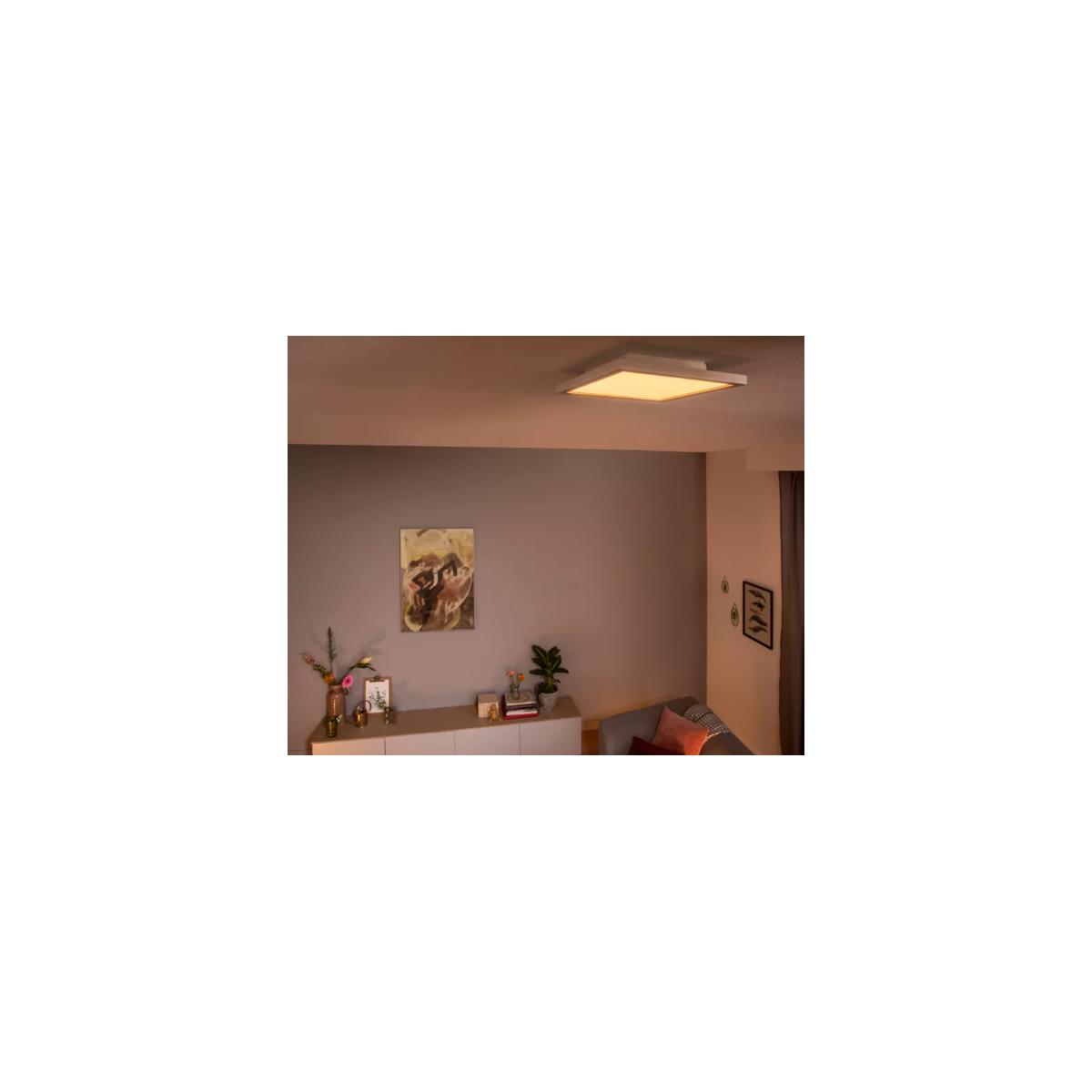 Mit der quadratischen Philips Hue White Ambiance Panelleuchte Aurelle erhältst Du ein warmes bis kühles weißes Licht. Nutze die integrierten Lichtszenen und steuere die Leuchte sofort mit dem enthaltenen Philips Hue Dimmschalter oder über die Philips Hue Bluetooth App. Mit einer Philips Hue Bridge kannst Du sämtliche smarte Lichtfunktionen nutzen.