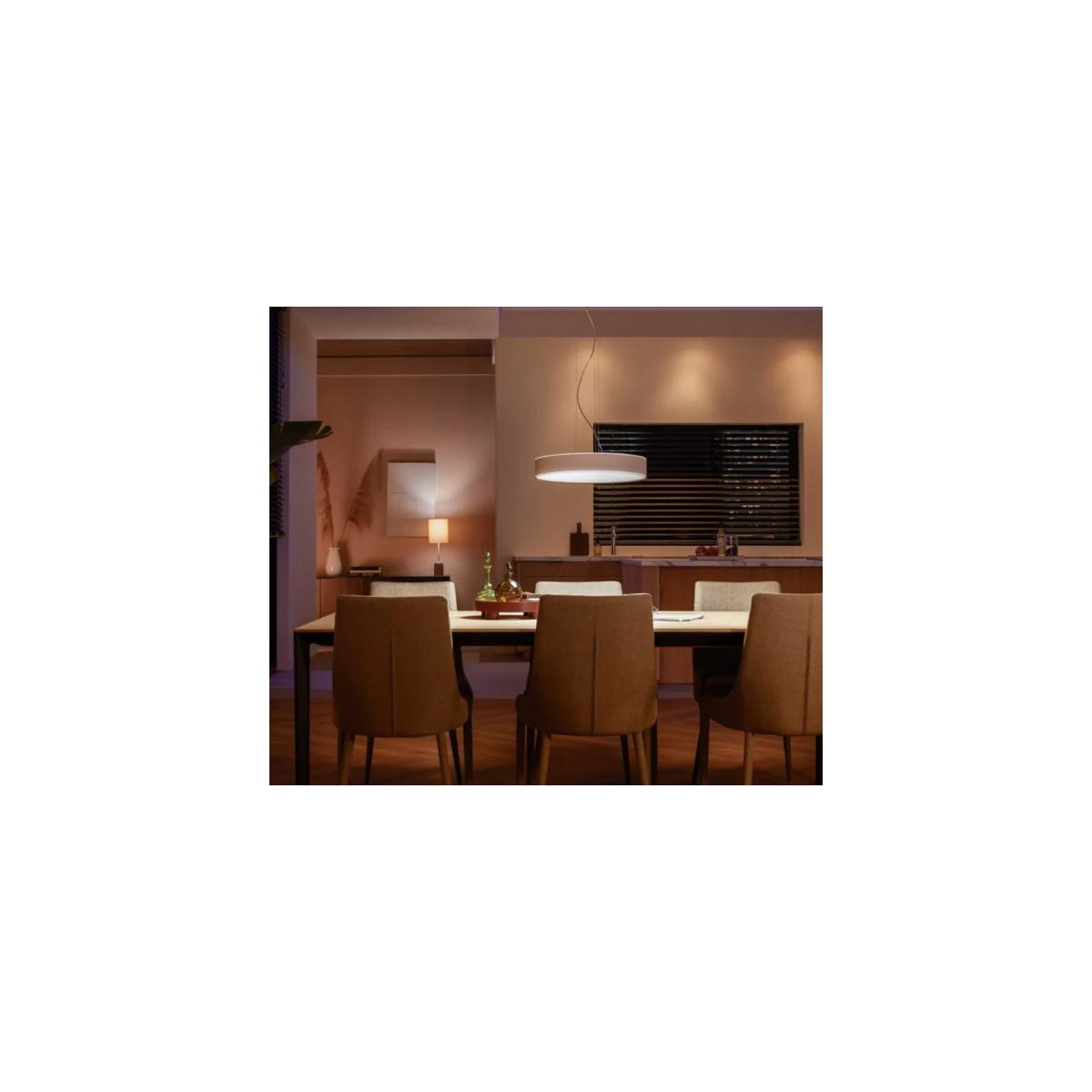 Die Hue Enrave Deckenleuchte in Weiß eignet sich aufgrund des sanft nach oben gerichteten indirekten Lichts und des kraftvollen Lichts nach unten prima für den Essbereich. Nutze das warm- bis kaltweiße Licht für jede Aufgabe, etwa um bei den Hausaufgaben zu helfen oder die passende Atmosphäre für das Abendessen zu schaffen.
