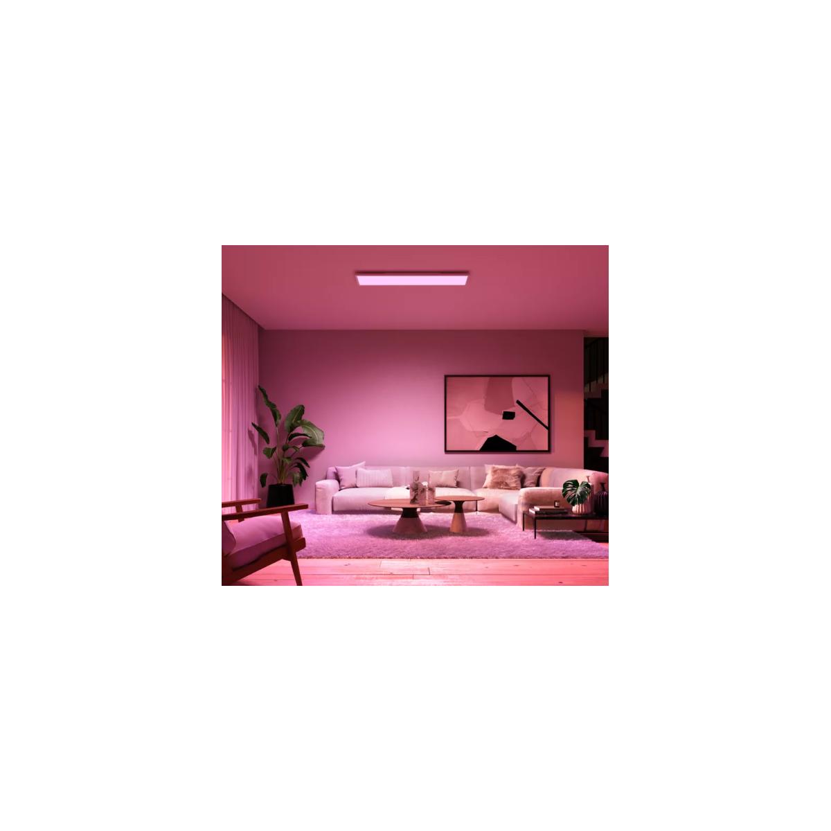 Das rechteckige Hue Surimu Deckenpanel zeichnet sich durch ein weiches, farbenfrohes indirektes Licht aus. Das hervorragend für Wohn- und Schlafzimmer geeignete Hue Surimu Deckenpanel lässt sich einfach installieren. Es schließt bündig mit der Decke ab und füllt den Raum mit Farbe.